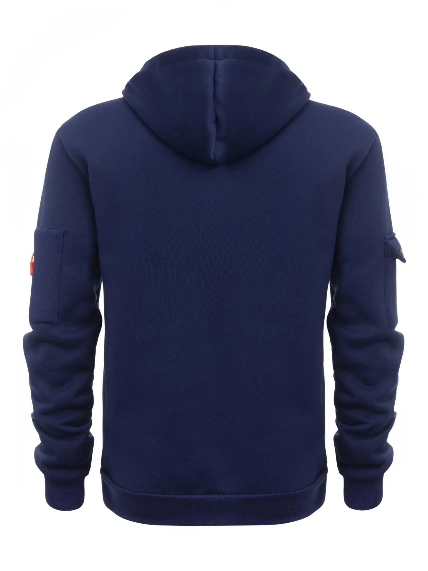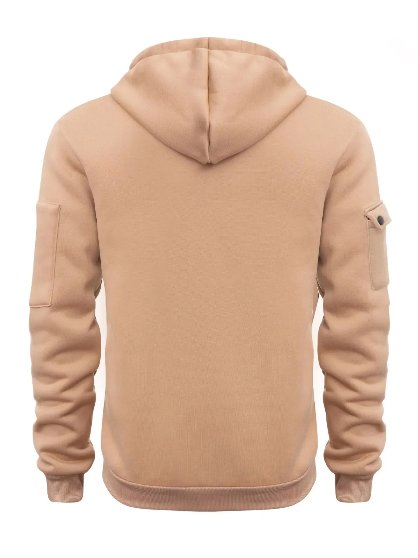 These pockets are not only functional but also enhance the hoodie’s visual appeal, giving it a rugged, street-smart vibe that resonates with contemporary men’s fashion.