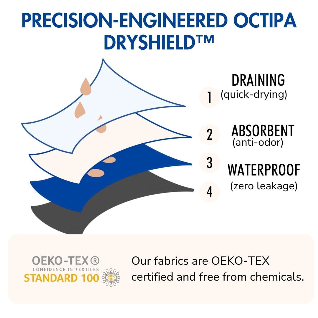 Our ultra-absorbent incontinence boxer briefs are made up of four protective layers that block all types of bladder weakness that can occur