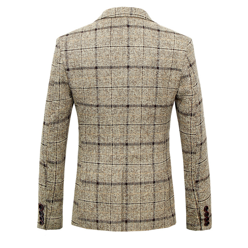 Men's Vintage Plaid One-Button Lapel Blazer