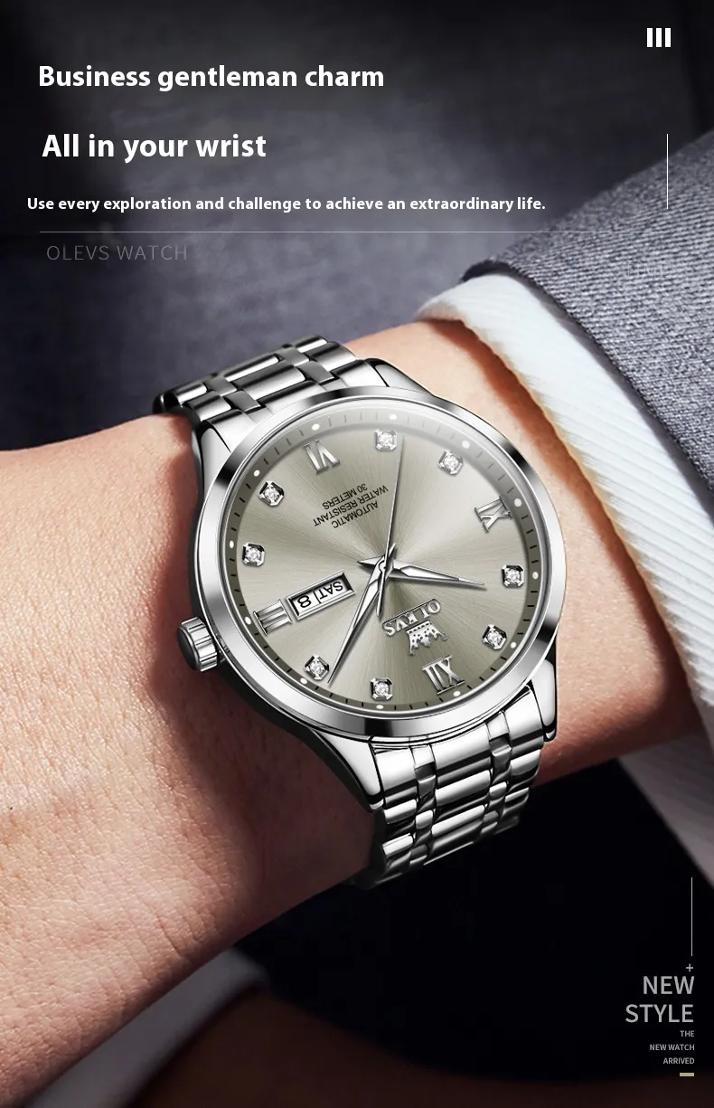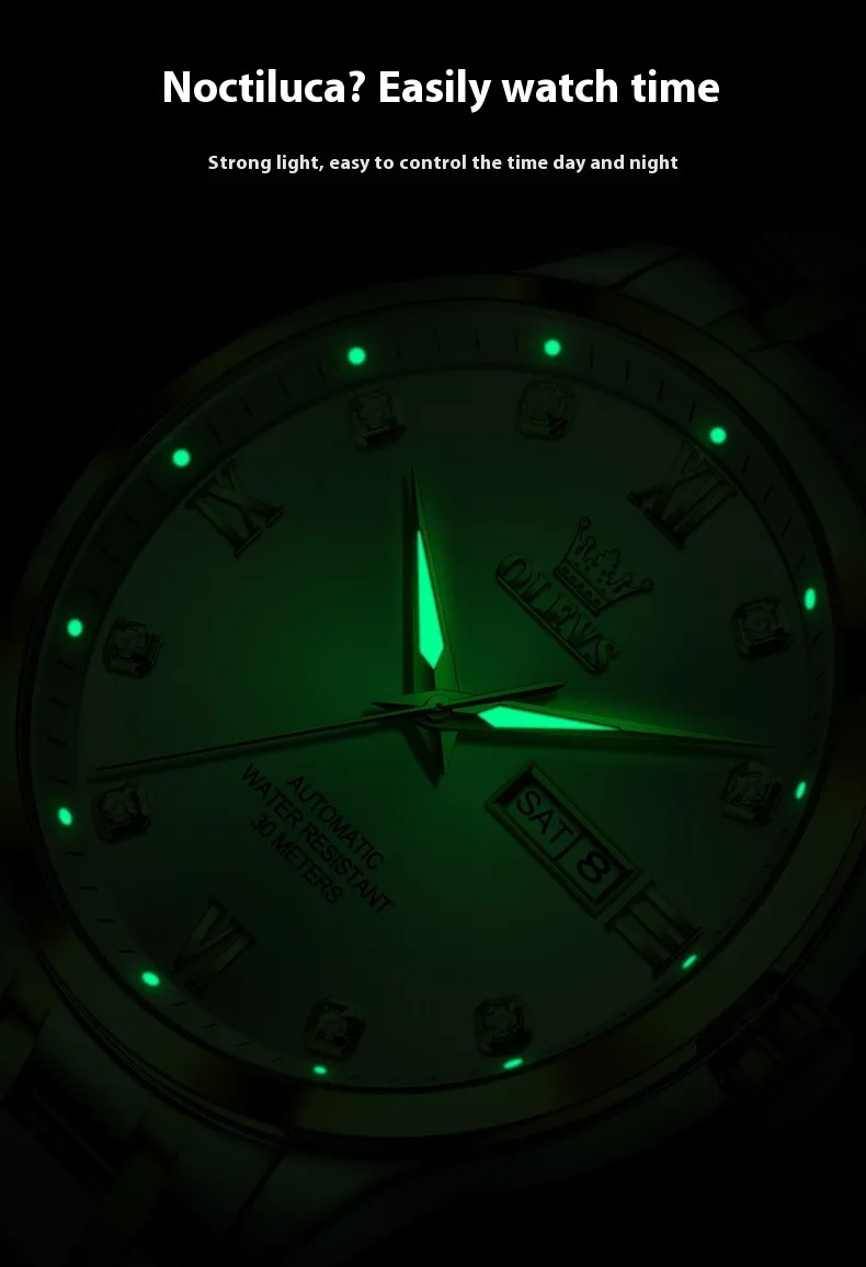 markers ensure excellent visibility in low-light conditions, making it easy to check the time no matter the environment. The clear, stylish