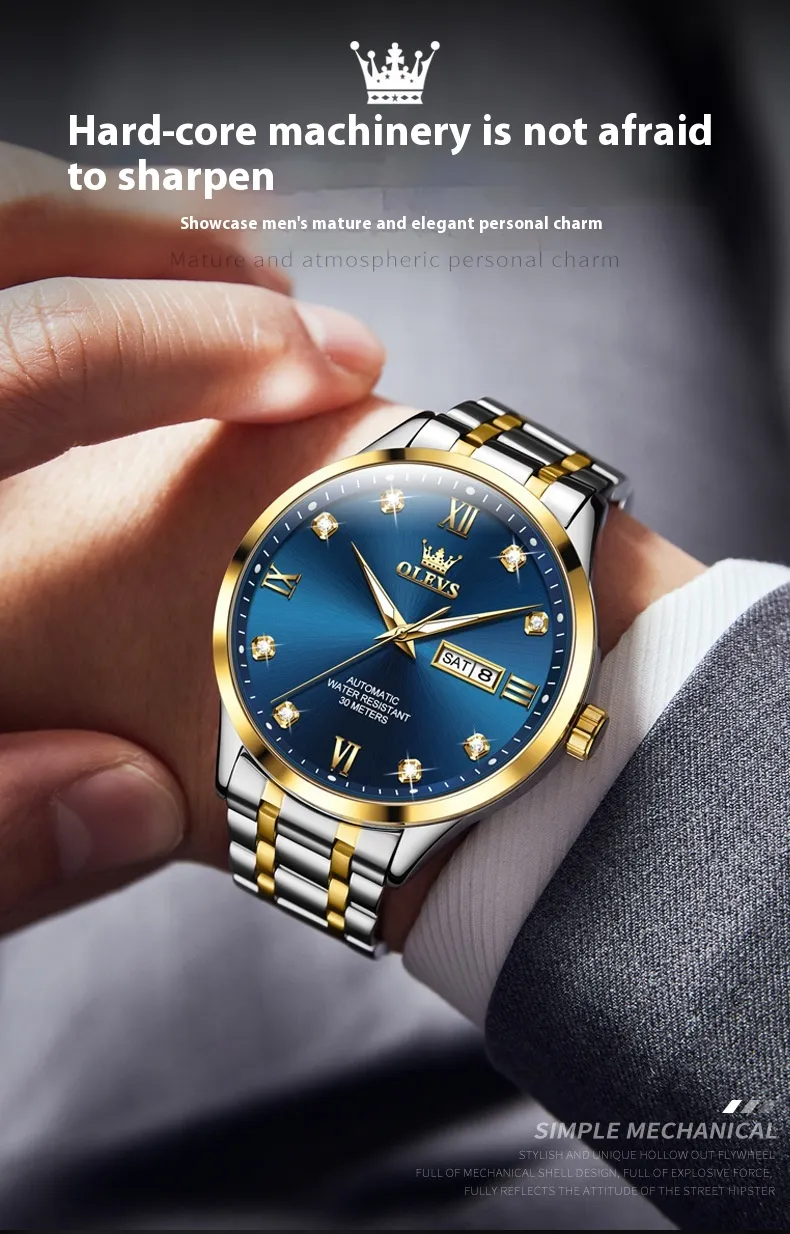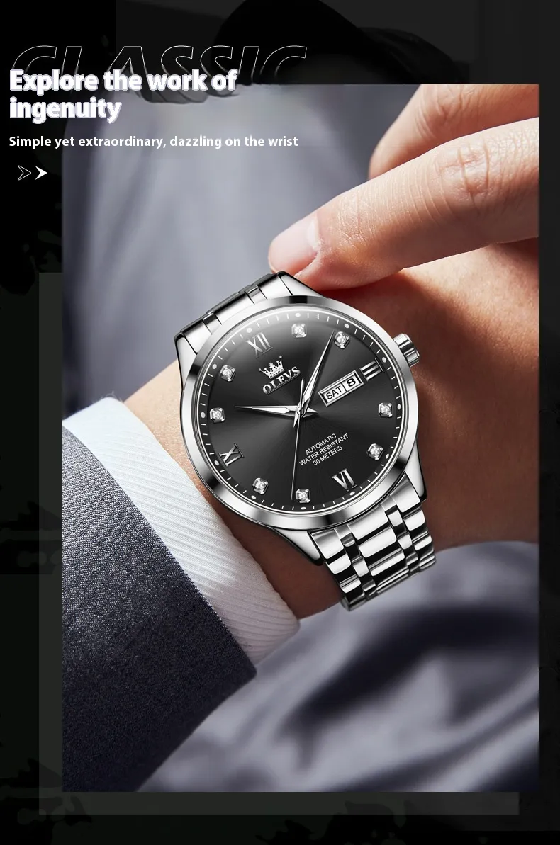 Elevate your collection with the Men's Waterproof Automatic Mechanical Watch, where performance meets style.
