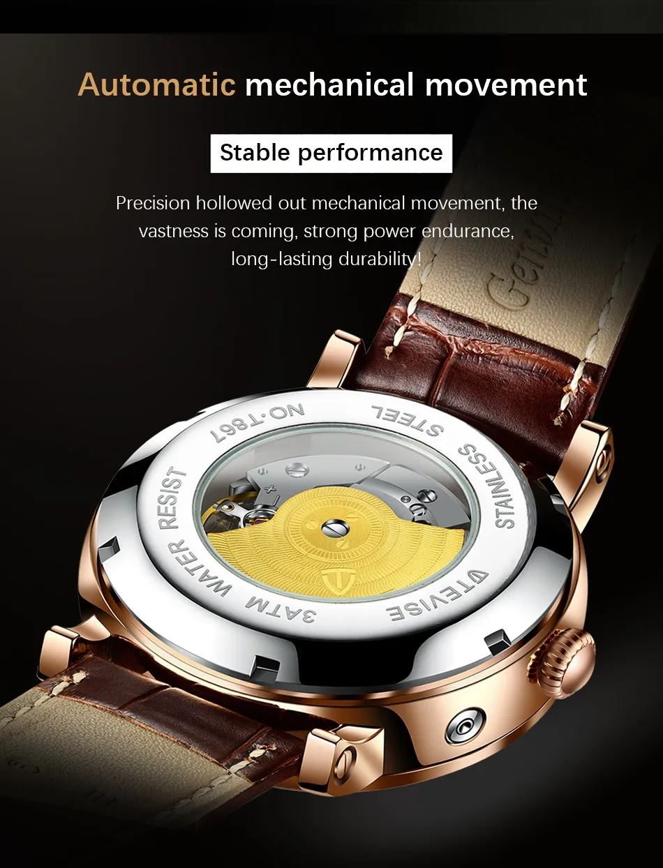 case back allows watch enthusiasts to marvel at the intricate mechanical gears, a true testament to exceptional craftsmanship. The