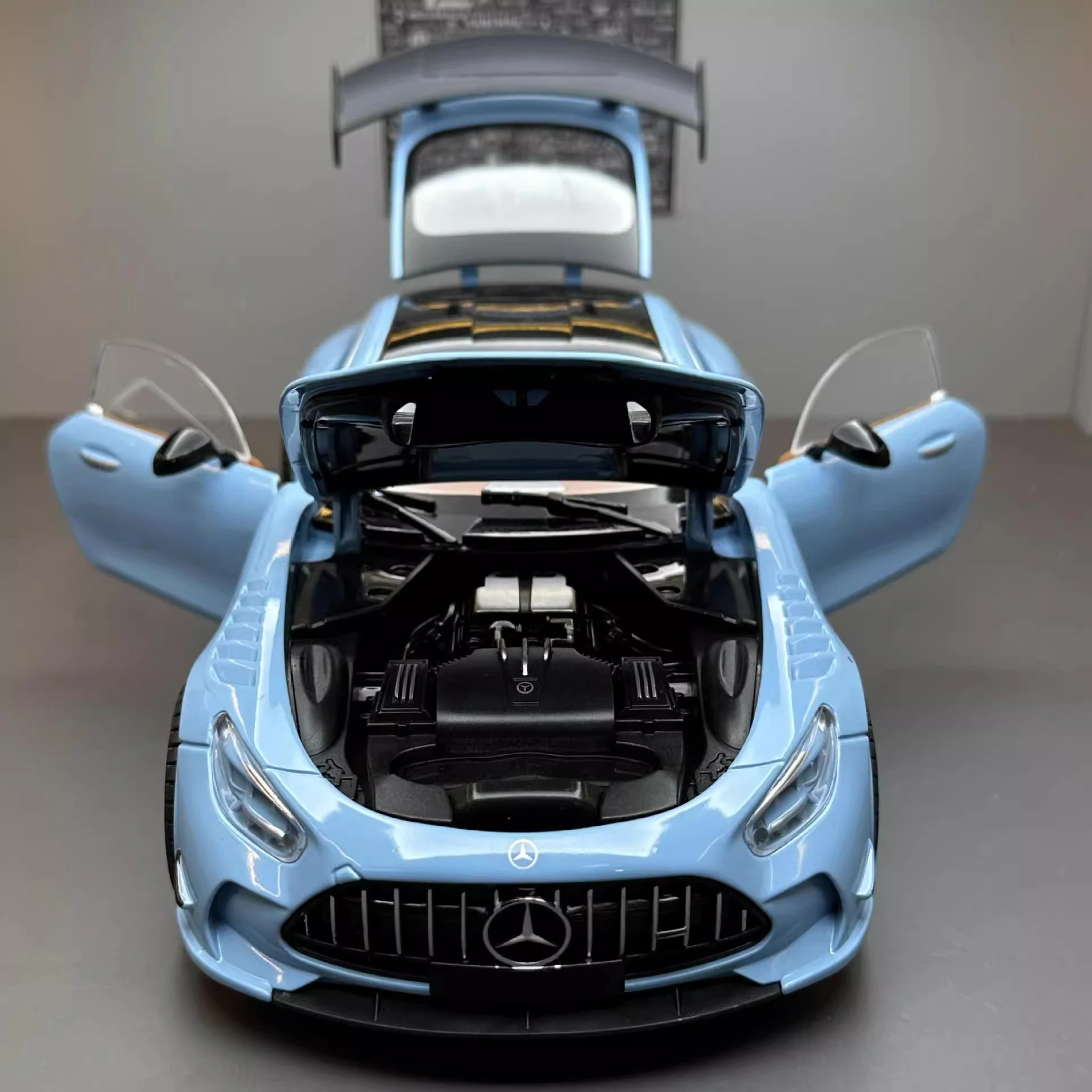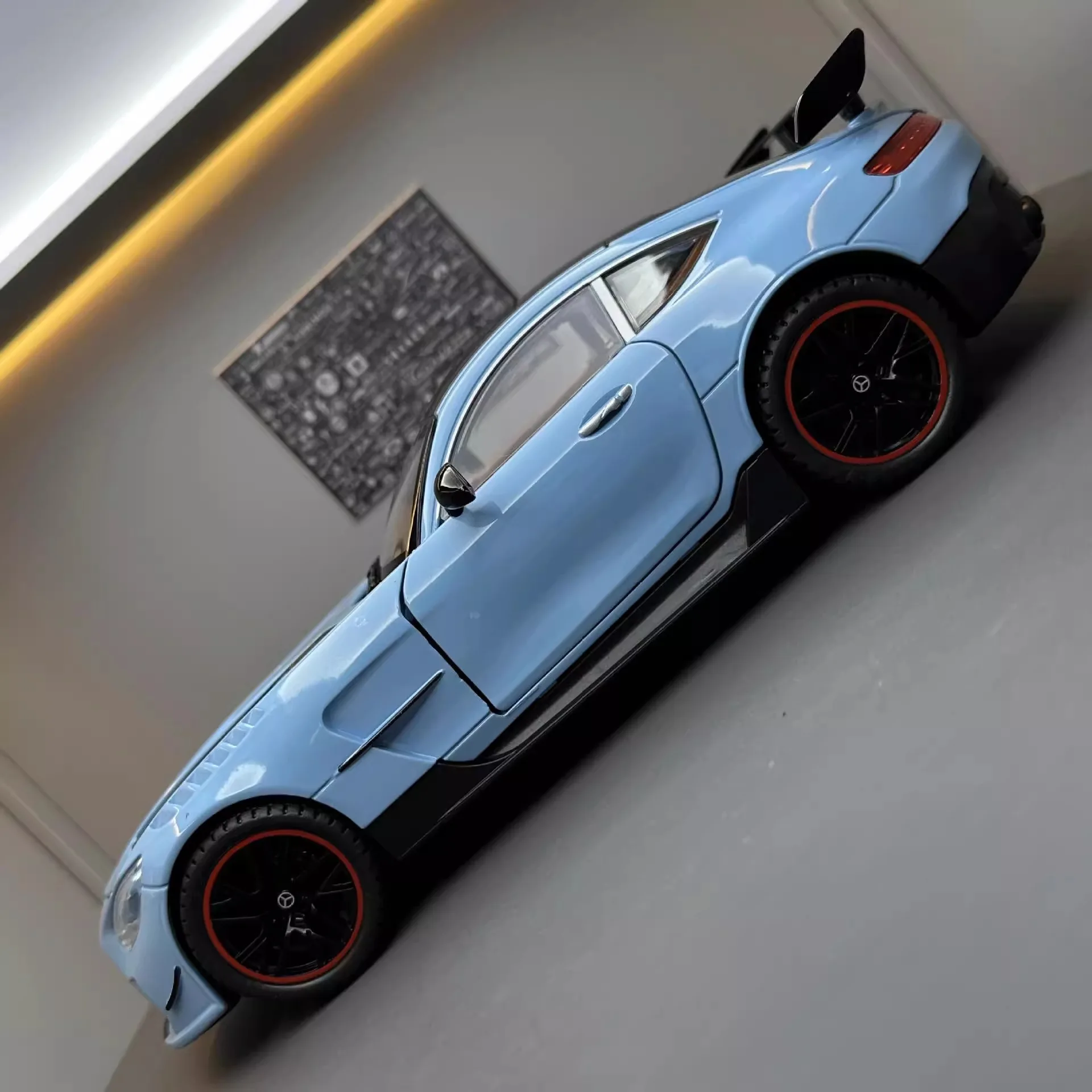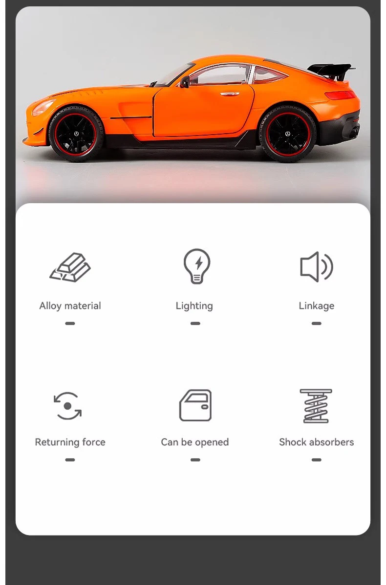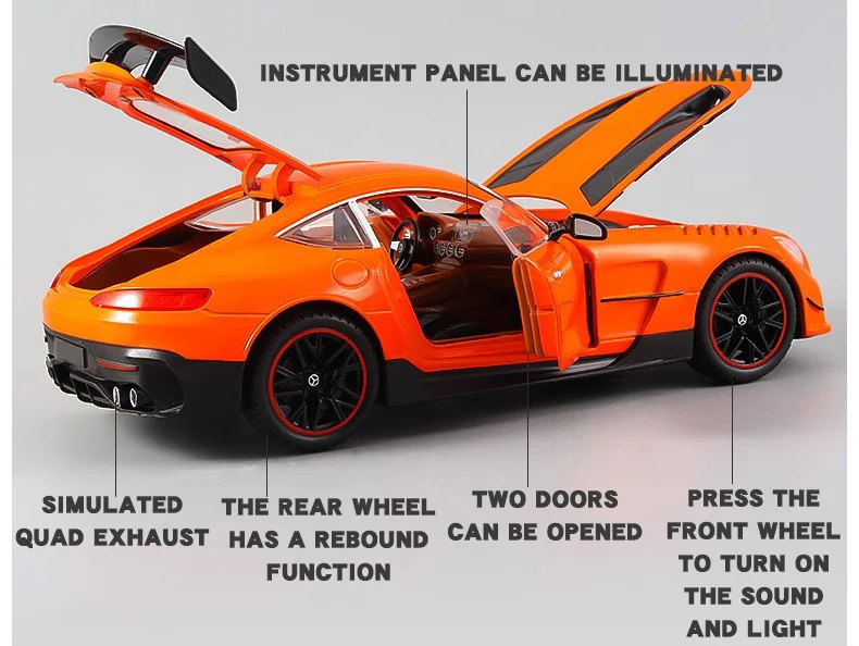 The Large 1:18 Mercedes Benz GTR Miniature Collection is the ultimate collectible diecast vehicle for both enthusiasts and children alike. This simulation alloy car features incredible detail and craftsmanship, providing an authentic experience that mirrors the grandeur of the actual Mercedes Benz GTR. Equipped with sound and light features, this diecast vehicle brings the thrill of the famous car right into your hands. Whether you are a car collector, a fan of Mercedes Benz, or looking for an excellent gift for children, this toy car is the perfect addition to any collection.