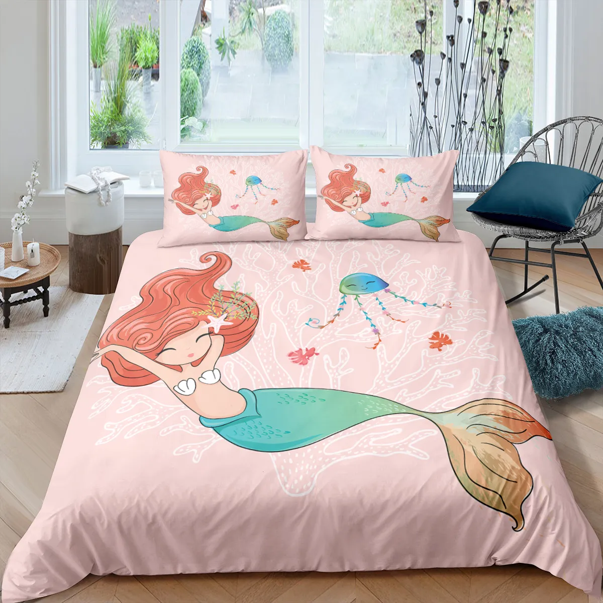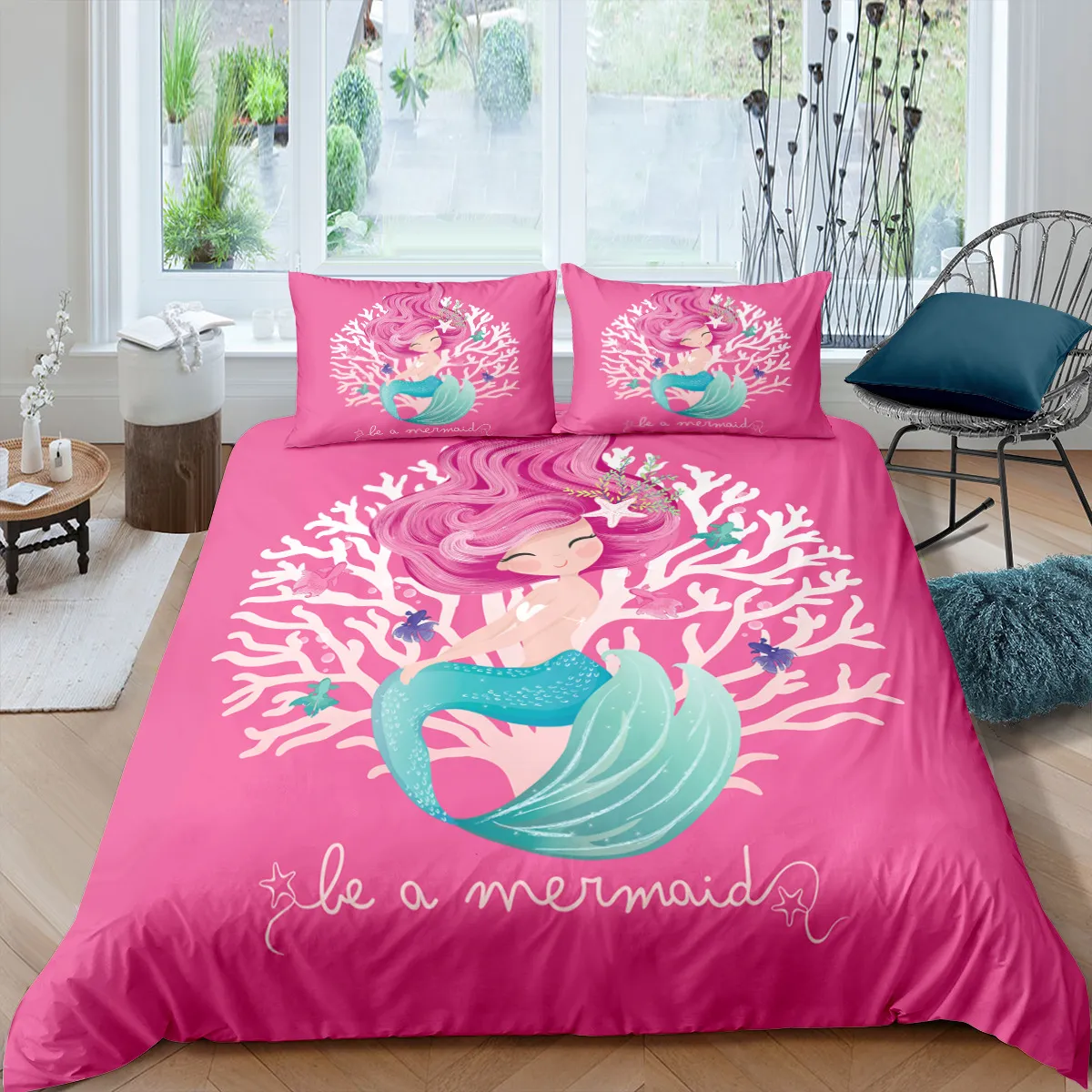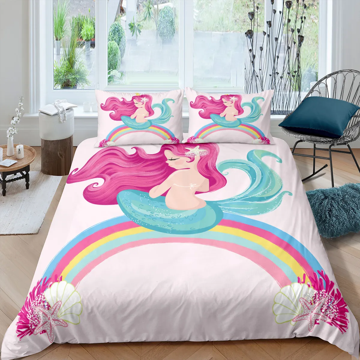 Transform your bedroom into an undersea fantasy with our Mermaid Duvet. Designed to bring magic and comfort into any bedroom, this duvet features vibrant, enchanting colors and a playful mermaid design that’s perfect for kids and adults alike. Whether you're looking to add a touch of whimsy to a child's room or seeking a fun, ocean-inspired design for your own space, the Mermaid Duvet brings a splash of creativity and warmth to your bedding.