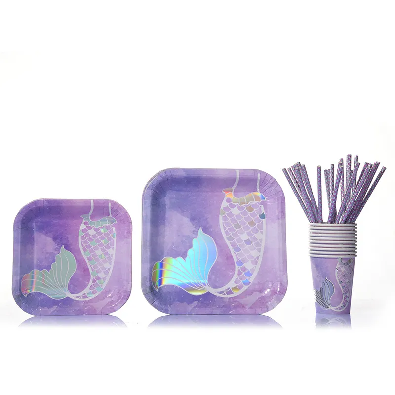 Mermaid Tableware Supplies Creative Fishtail Paper Cup Paper Plate