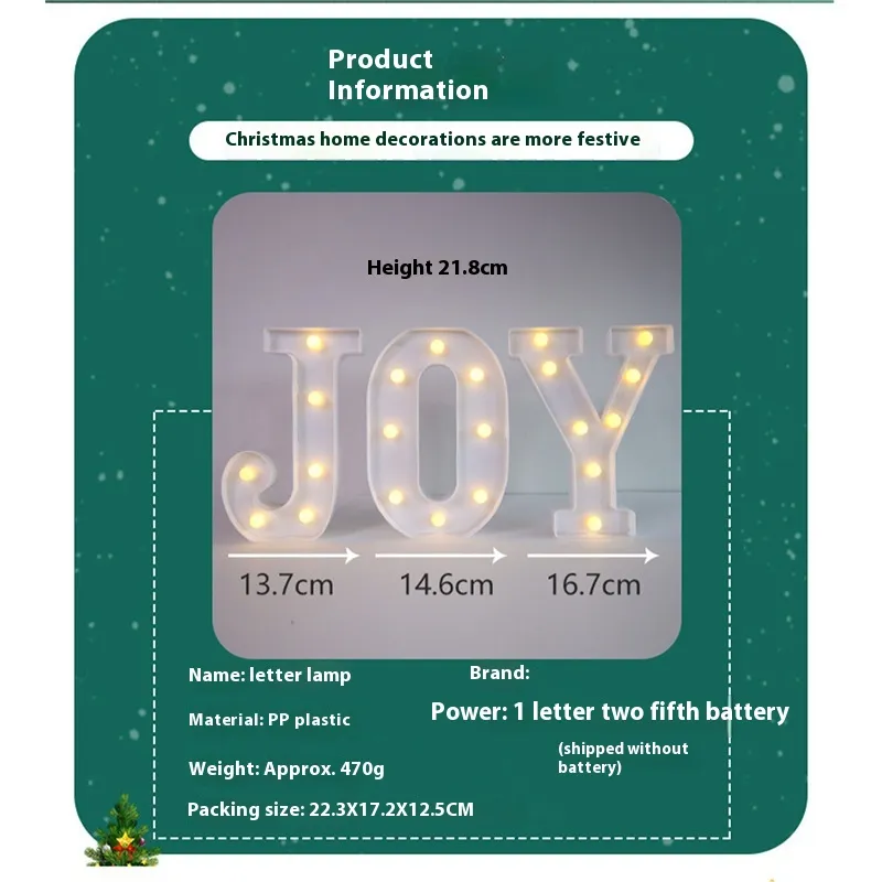 Merry Christmas Letter Light JOY Decorative Letters Decoration Christmas Home Party Desktop Ambience Light