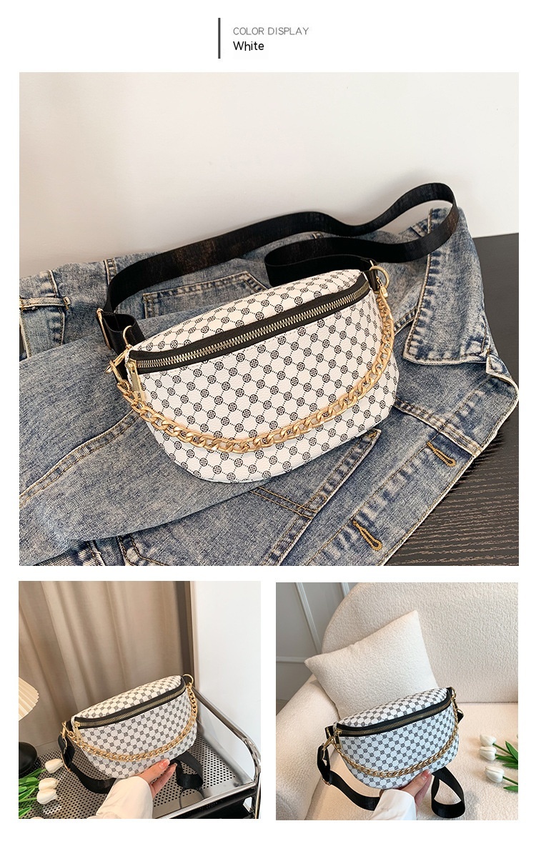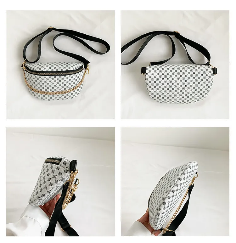 Metal Chain Shoulder Messenger Bag Full Printed Plaid Women