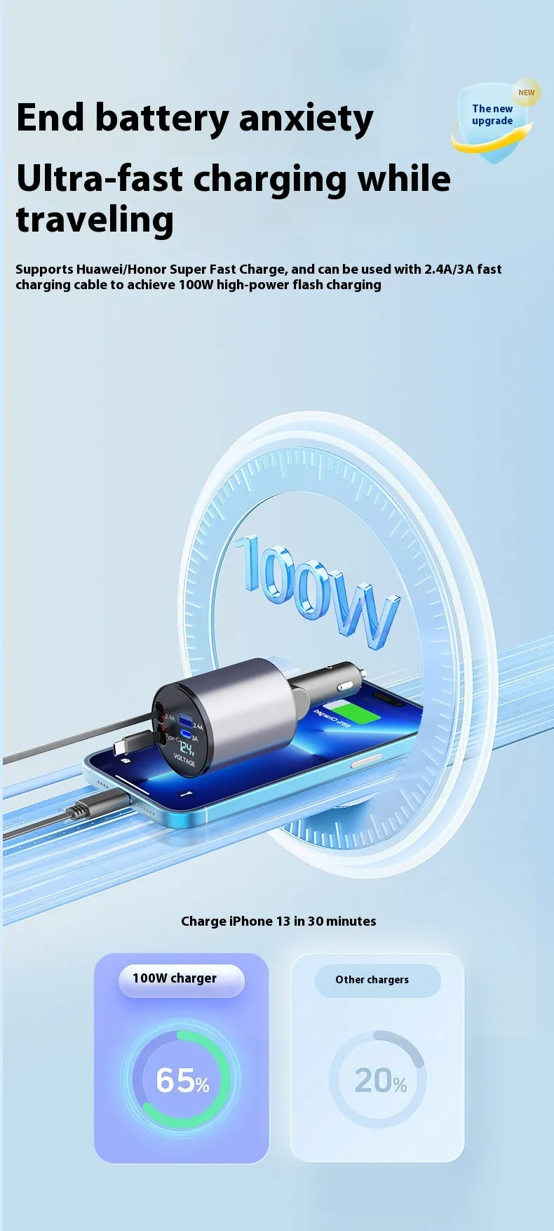 Featuring dual USB ports, this car charger allows you to charge two devices simultaneously. Whether you're charging your phone and your partner’s device or powering up your phone and tablet at the same time, the dual ports offer ultimate convenience without compromising charging speed.