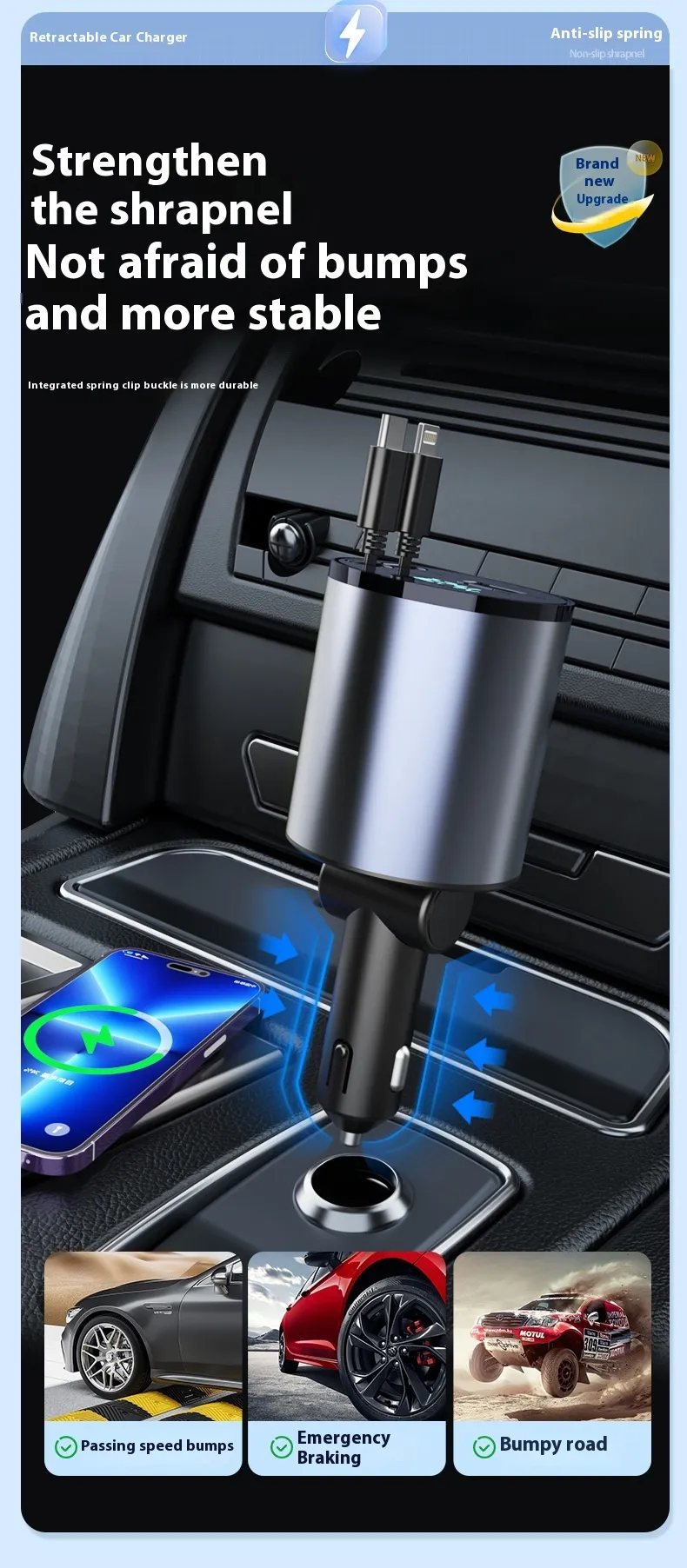 The compact size and lightweight design make this charger ideal for vehicles with limited space. It fits neatly into your car’s cigarette lighter socket without interfering with other car functions, ensuring a clean and organized setup.