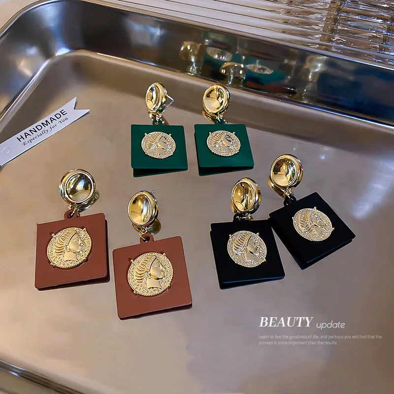 Product Description: Metal Portrait Square Earrings – Unique and Niche Jewelry