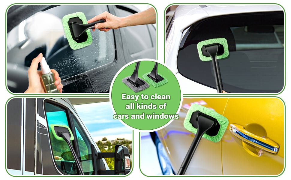 This Microfiber Car Window Cleaner has a microfiber cloth that makes cleaning car windows easily. With complete contact with the glass and allows you to reach into corners and other areas you simply could not get to easily.