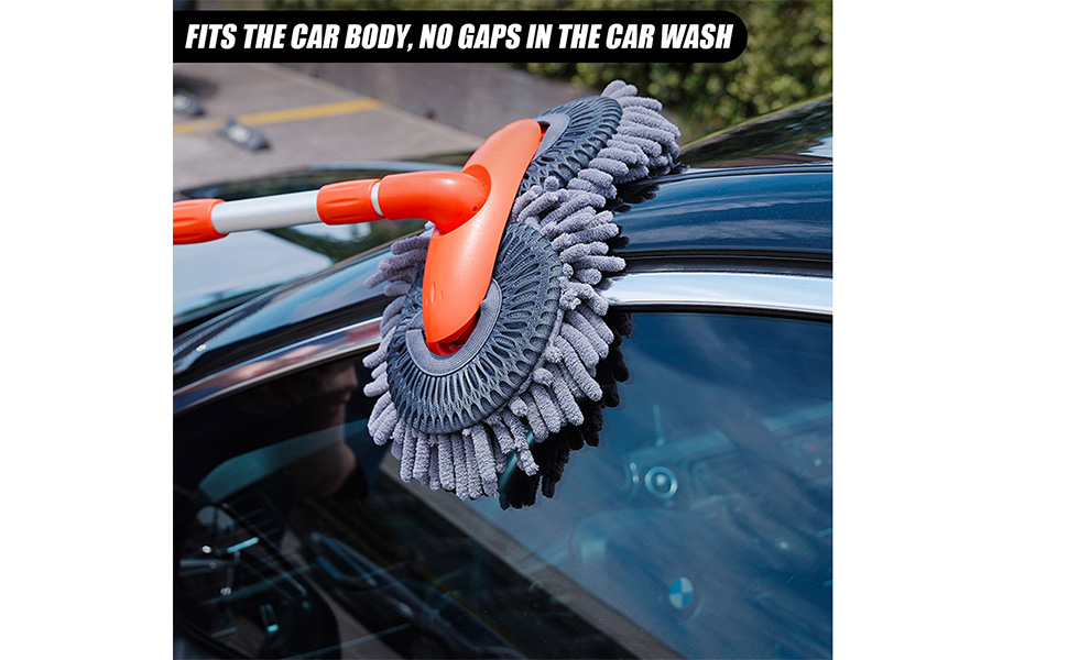- 𝐃𝐎𝐔𝐁𝐋𝐄 𝐇𝐄𝐀𝐃 𝐃𝐄𝐒𝐈𝐆𝐍- This car wash mop brush features a double head chenille microfiber head, which provides a larger cleaning range for more efficient coverage. The chenille microfiber is soft, absorbent, and foams easily, ensuring a scratch-free cleaning experience that won't damage the paint of your car.