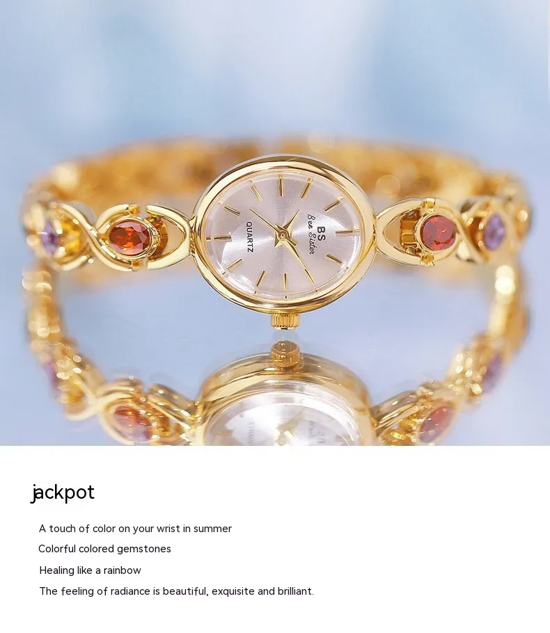 Mid-ancient Fashion Oval Colored Gems Rainbow Light Luxury Watch