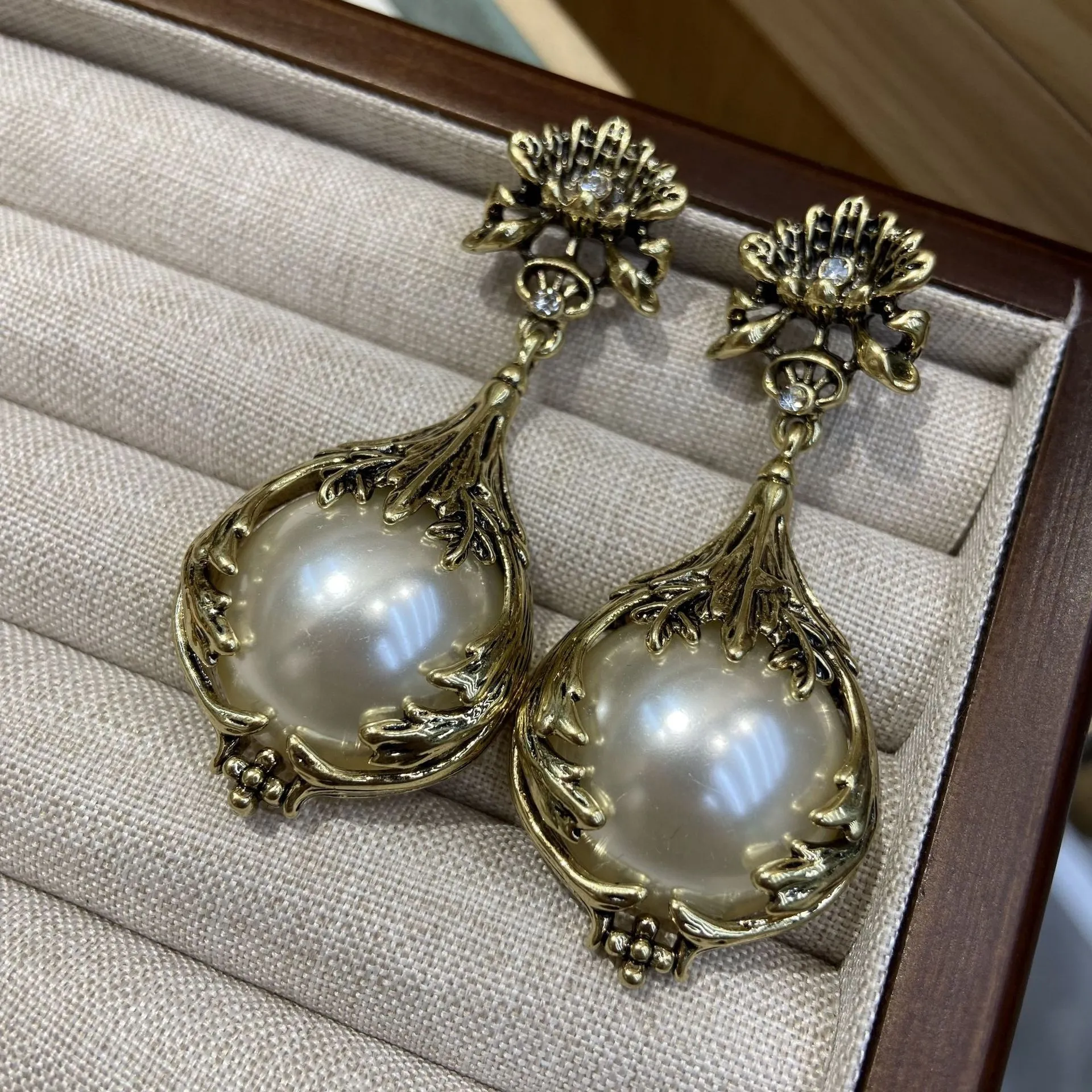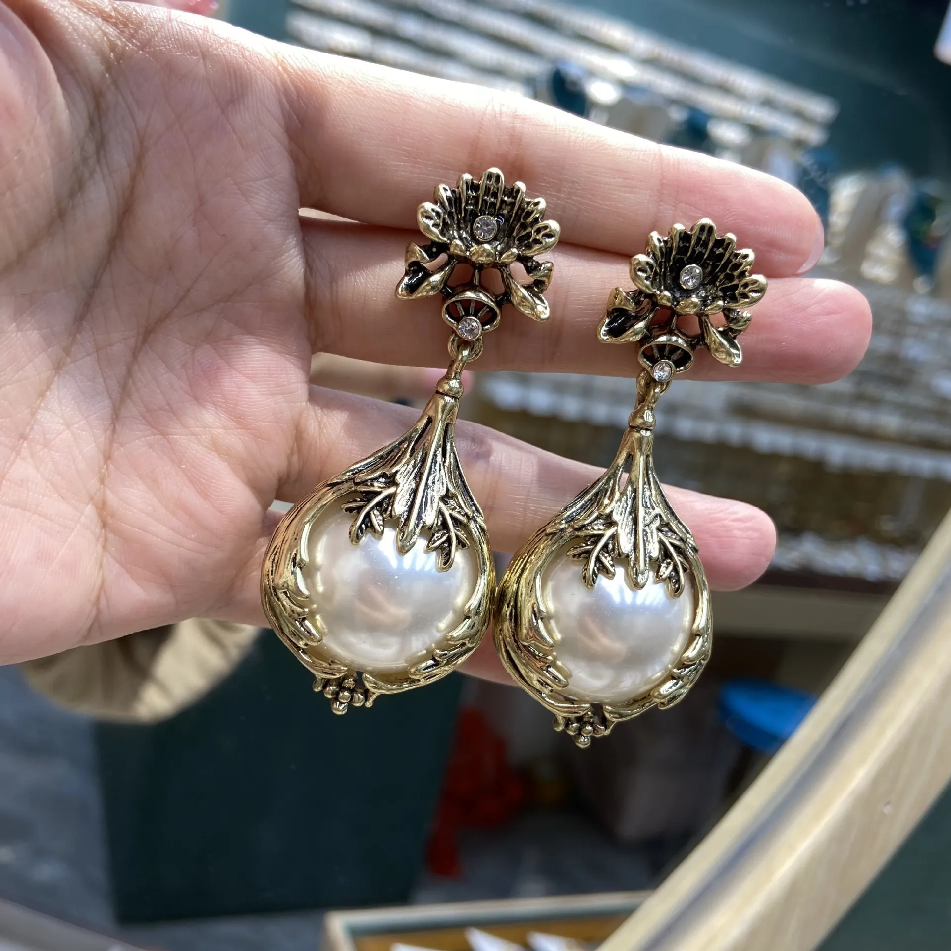 Mid-ancient Vintage Baroque Pearl Rose Earrings