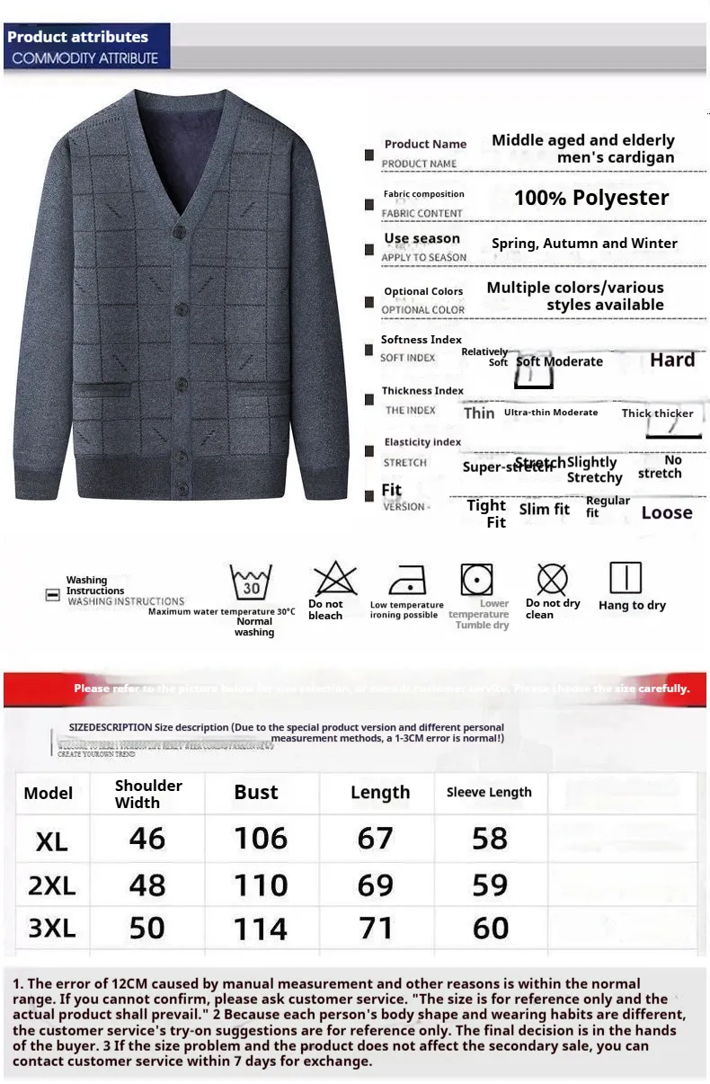 In conclusion, the Middle-aged and Elderly Men's Sweater Cardigan Autumn and Winter Dad Wear is a must-have for dads looking for a comfortable, stylish, and practical piece for the colder months. With its soft fabric, classic button-down design, and breathable material, this sweater ensures warmth and comfort without sacrificing style. Perfect for autumn and winter wear, it’s a versatile addition to any wardrobe, making it an excellent choice for everyday outings or family events.