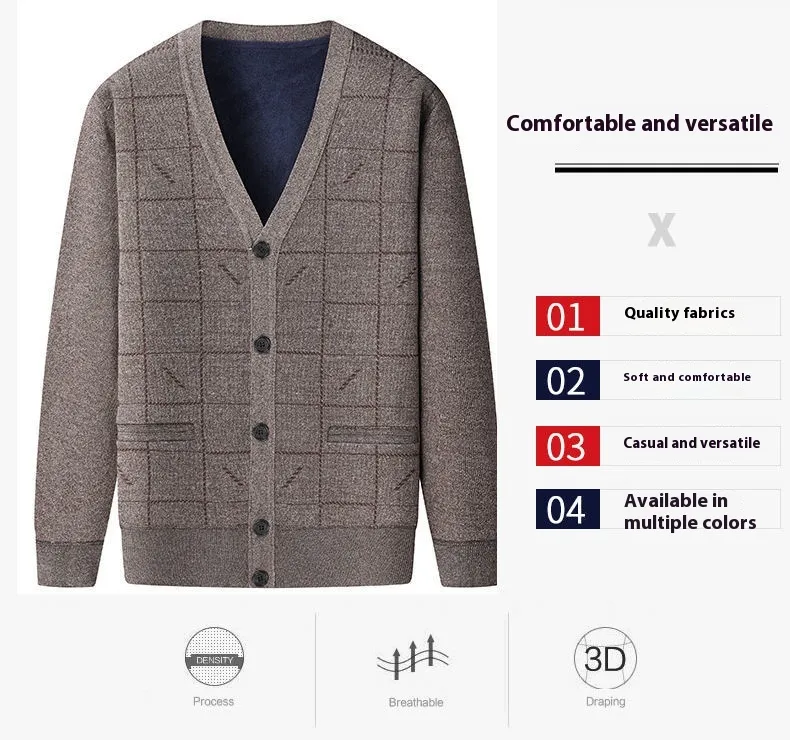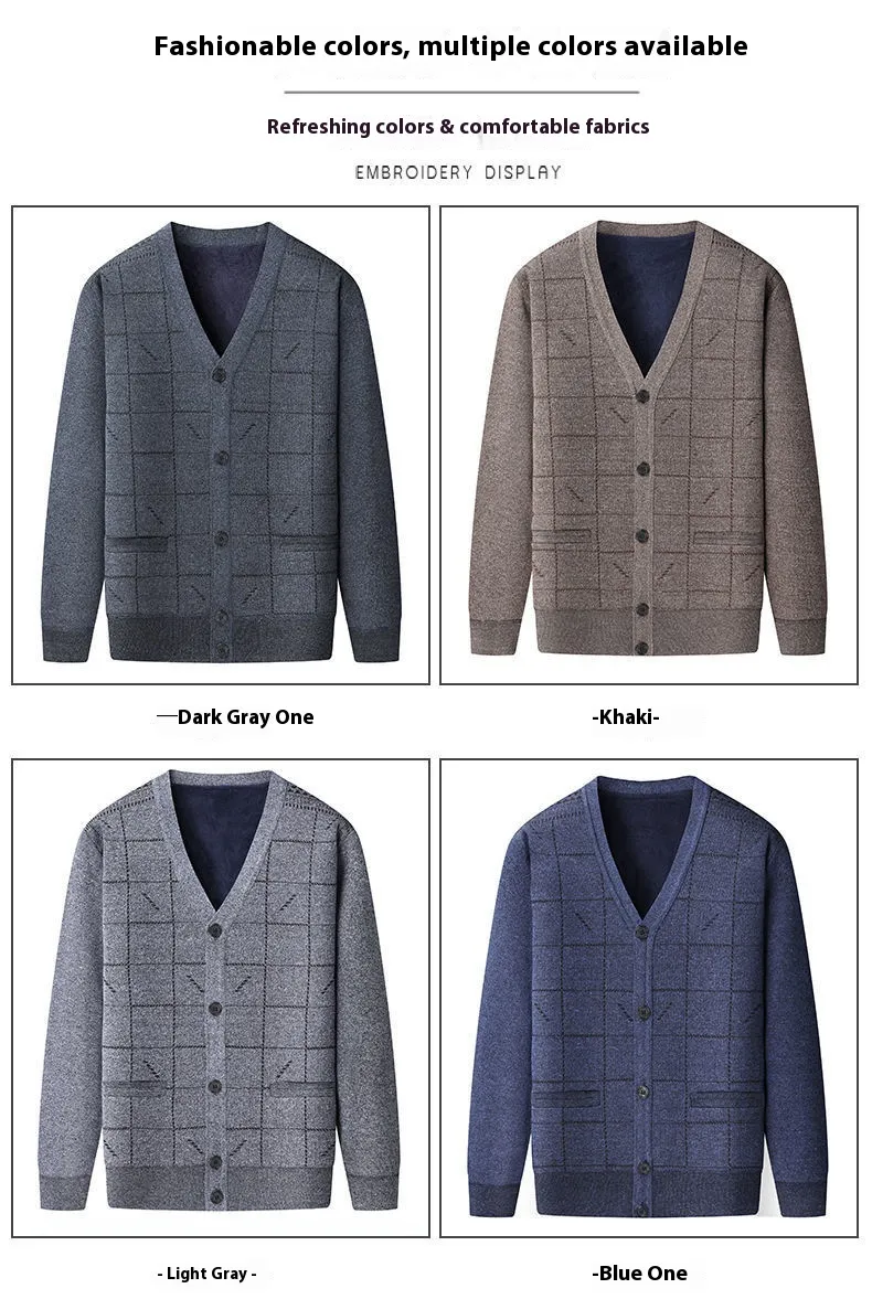 The Middle-aged and Elderly Men's Sweater Cardigan Autumn and Winter Dad Wear is the perfect combination of comfort, warmth, and style, specifically designed for the older gentleman. Crafted with a focus on both functionality and fashion, this sweater cardigan provides the ideal layering piece for the colder months. Whether for casual outings, family gatherings, or everyday wear, this sweater ensures that dad stays warm and stylish all season long.