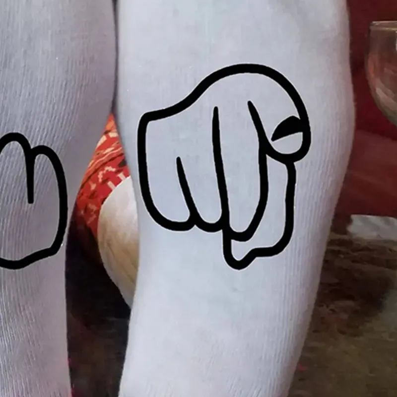- Design: Features a bold middle finger graphic, adding a playful and rebellious touch to your socks