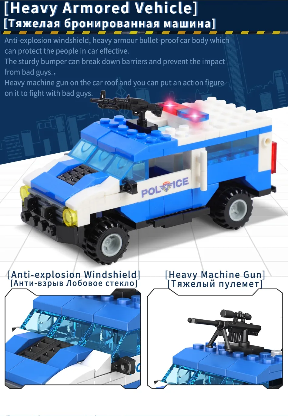 Large trucks are composed of all blocks, you cannot assemble 8 small vehicles and large trucks at the same time.