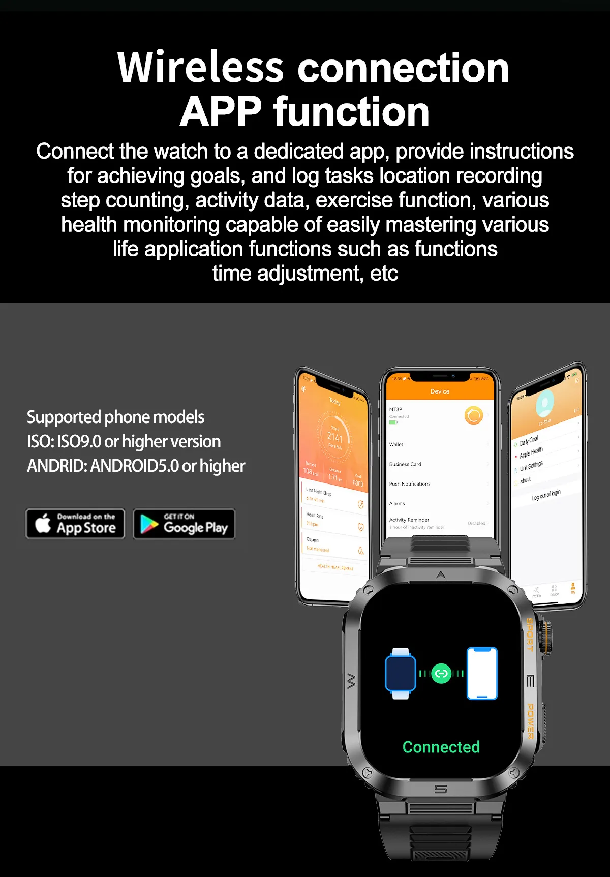 Military Smartwatch is ideal for anyone who wants a smartwatch that can withstand the elements and keep up with a fast-paced lifestyle.