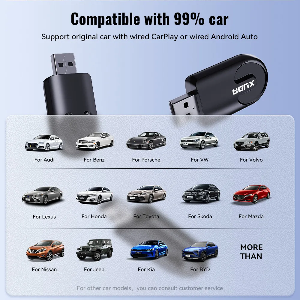 This wireless connection reduces cable clutter, offering a clean, streamlined setup while maintaining stable, high-speed connectivity between your phone and car's infotainment system.