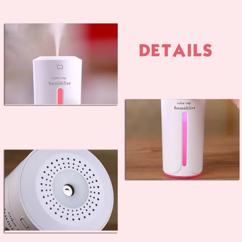 Perfect for cars, bedrooms, offices, and travel, this mini diffuser helps maintain optimal humidity levels while providing essential oil benefits on the go. Name: Color Humidifier Cup Material: ABS + PP + silicone + electronic components Dimensions: 68x68x145mm Voltage: DC 5 V power: 2 W capacity: 230 ml time settings: • 4-hour continuous spray • eight hours of intermittent sprays modes: Humidify • the night light first use instructions: please wait 5 minutes for the swab to fully absorb the water between filling the humidifier and turning the humidifier into Product characteristics: 1, Exquisite small, do not take up space, used in the car, enjoy the water vapor mist 2, deep hydration, meticulous. Micro-molecules easily penetrate the skin surface, straight to the base layer, keep cells full of water. 3, come with colorful night light, quiet night, help you have a good night sleep. 4, visual transparent water tank, keep abreast of the rest of the water, water in advance, moisturizer without worries. 5, More design details: anti-skid at the bottom; universal USB interface; Turn on the soft control lights and so on. ![]() ![]() ![]() ![]() ![]() ![]() ![]() ![]() ![]() ![]() ![]() ![]() ![]() ![]() ![]() ![]() ![]()