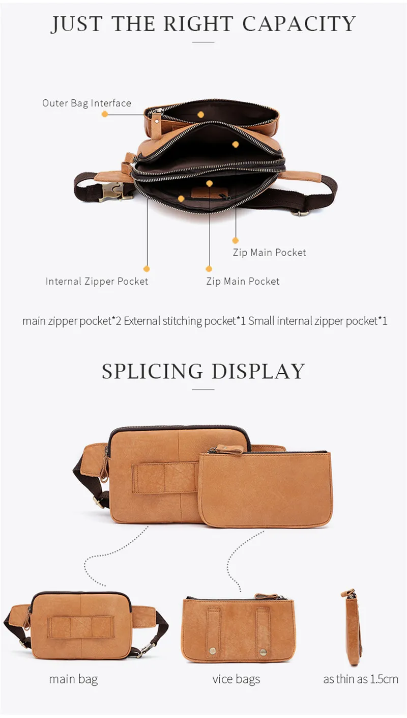 The internal structure of the bag: zipper pocket, mobile phone bag, document bag, sandwich zipper bag