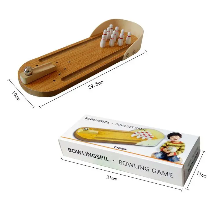 Mini Bowling Board Game Wooden Children's Educational Toys