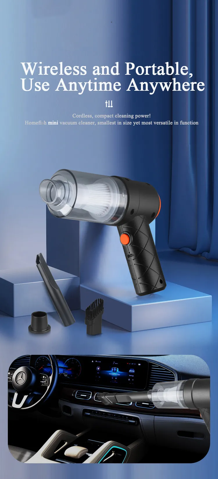 Mini Car Vacuum Cleaner Powerful Cleaning Machine Car Accessories Home Auto Robot Wireless Cleaner Home Appliance Strong Suction