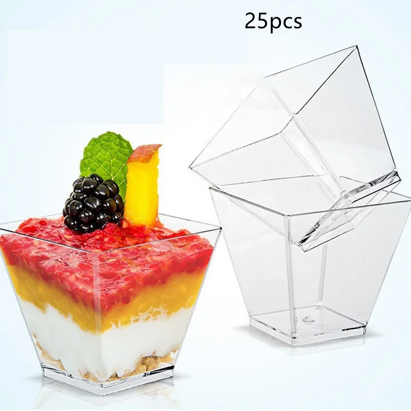 Elegant Presentation: Their small, transparent design allows for beautiful layering and presentation of desserts,