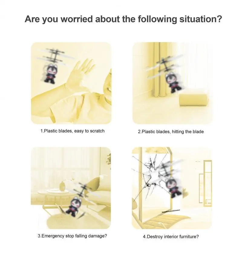 FLEXIBLE BLADE: The blades are made of a pliable material to prevent finger scratches and allow the aircraft to fly smoothly and flexibly.