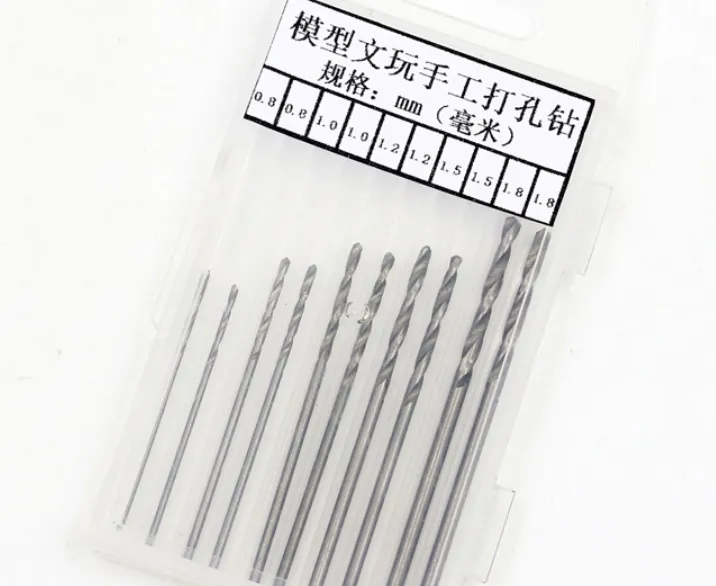 The set contains: a semi-automatic hand twist drill with a drill bit between 0-2mm, ten drill bits with 5 sizes: 0.8 1.0 1.2 1.5 1.8