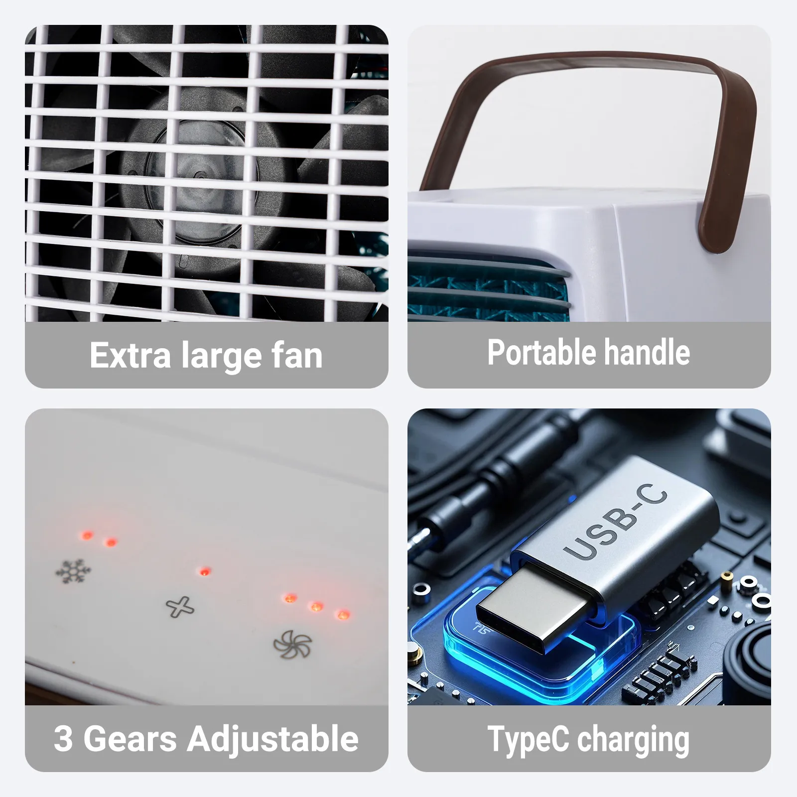 Enjoy the benefits of cooling without the distracting noise of larger fans or air conditioners. The Mini Household Desk Air Conditioner is designed to operate quietly, ensuring a peaceful and relaxing environment. Whether you're working, reading, or taking a nap, this fan won’t interrupt your concentration or relaxation.