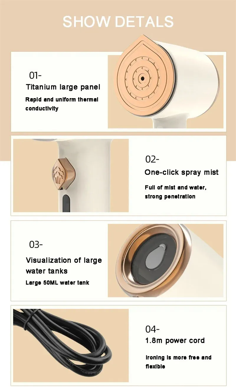 【Features】: Steam iron, titanium panel, effectively slows down high-temperature damage, irons clothes smoothly and without deformation, has a