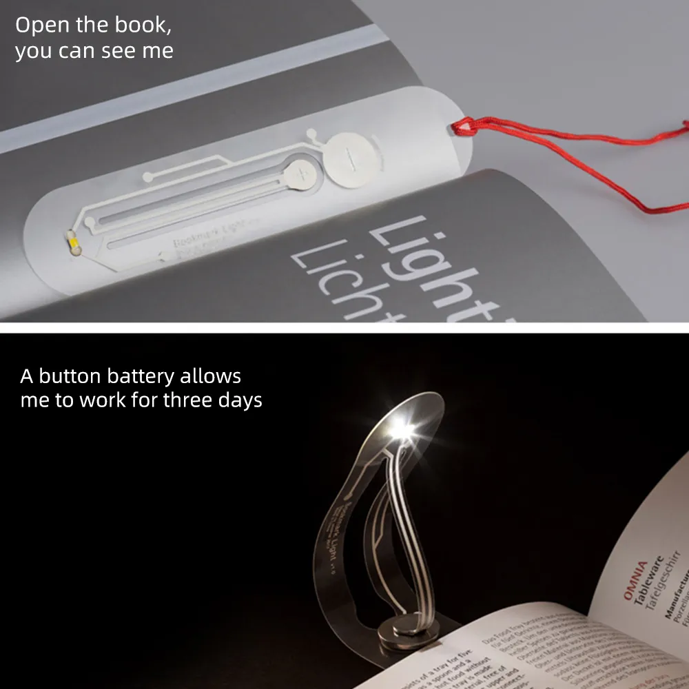 The built-in energy-efficient LED bulbs provide bright, evenly distributed light that ensures a comfortable reading experience without straining your eyes. This mini book light is powered by a button cell battery, offering long-lasting performance for multiple reading sessions. Whether you're reading a novel before bed, studying late at night, or traveling, this book-friendly light clips easily onto pages, ensuring you have the perfect amount of light without disturbing others around you.