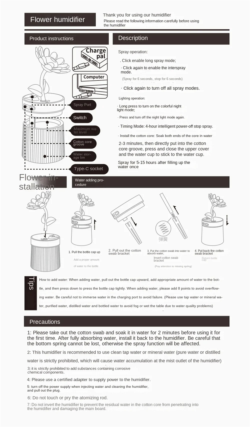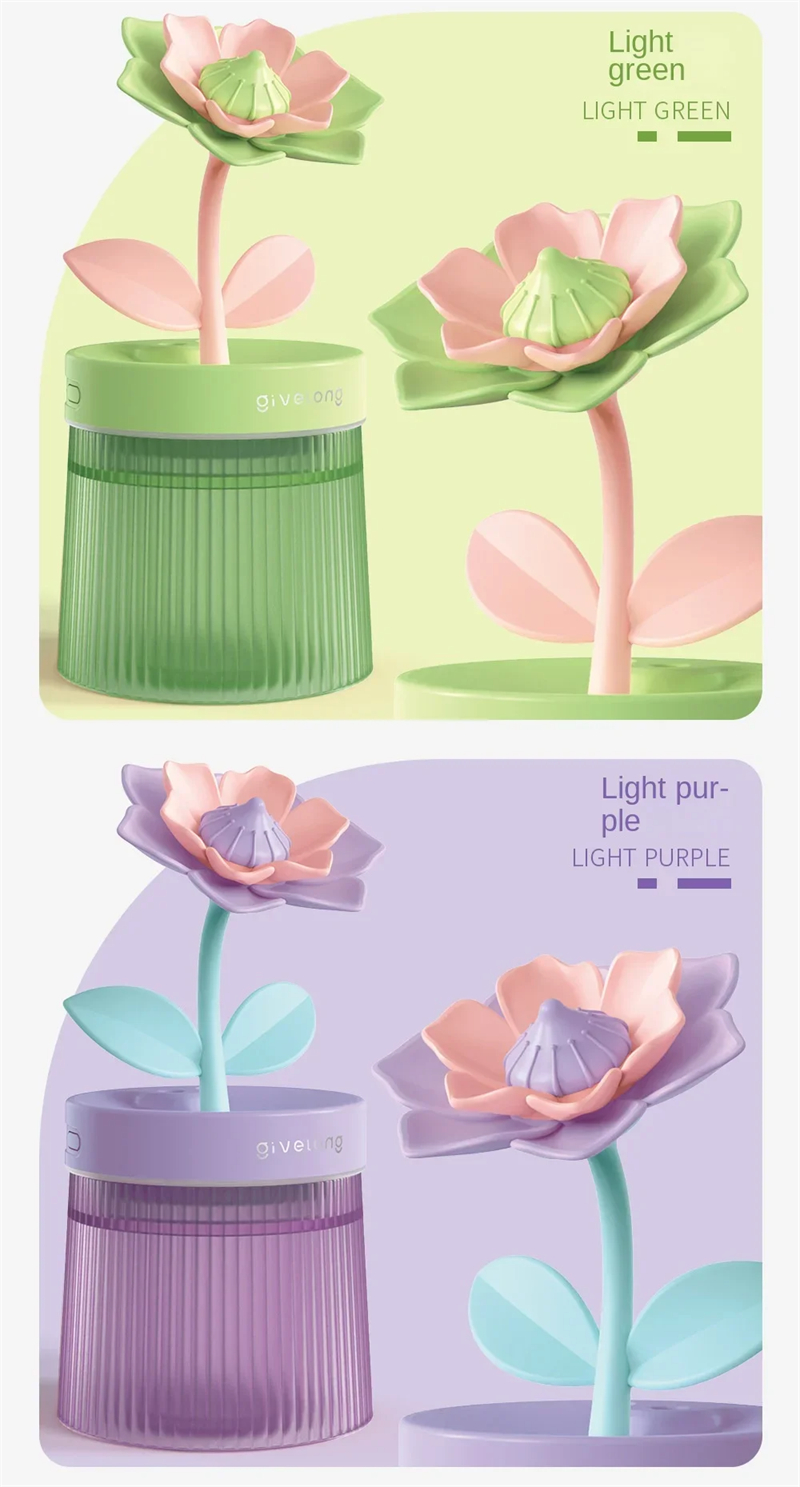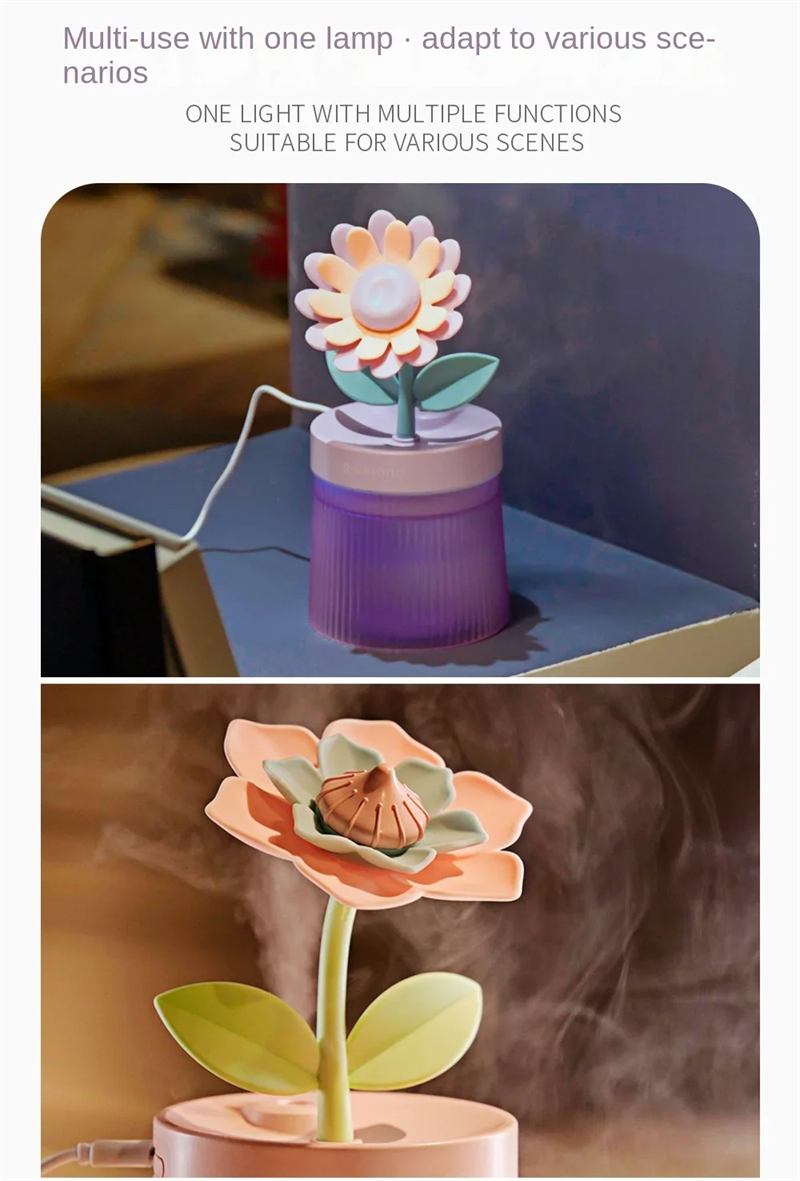 Flower Shape Design: The unique flower shape adds a decorative element to your space. It’s not just a humidifier, but also a