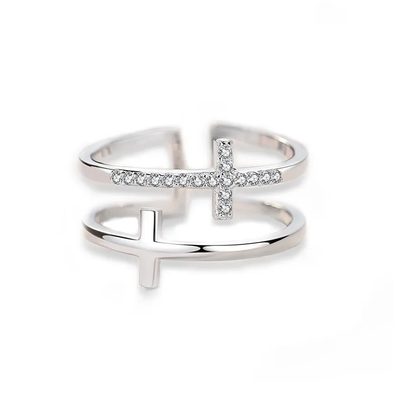 1*Women's open ring with zircon inlaid copper