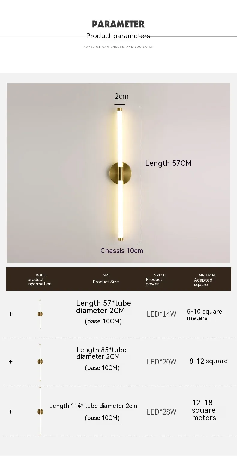 Light color: small 570MM long, medium 850MM long, large 1140MM long