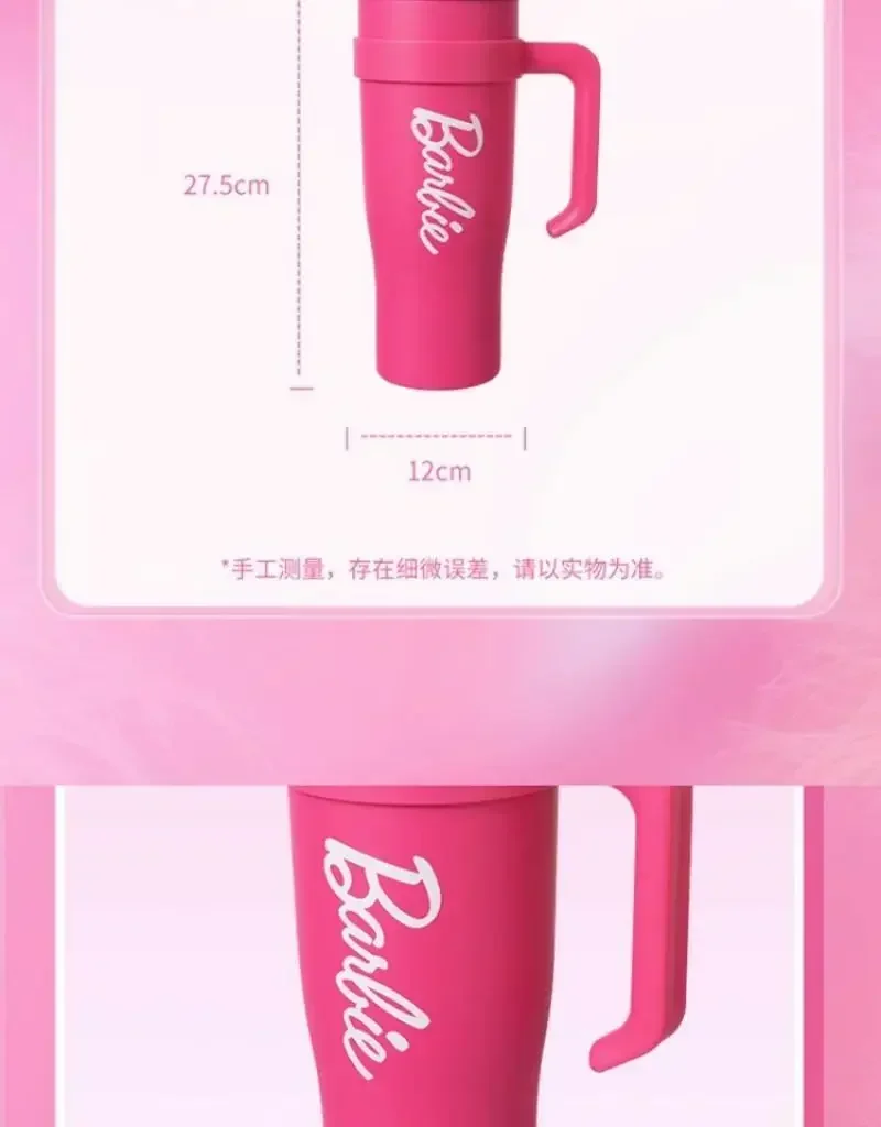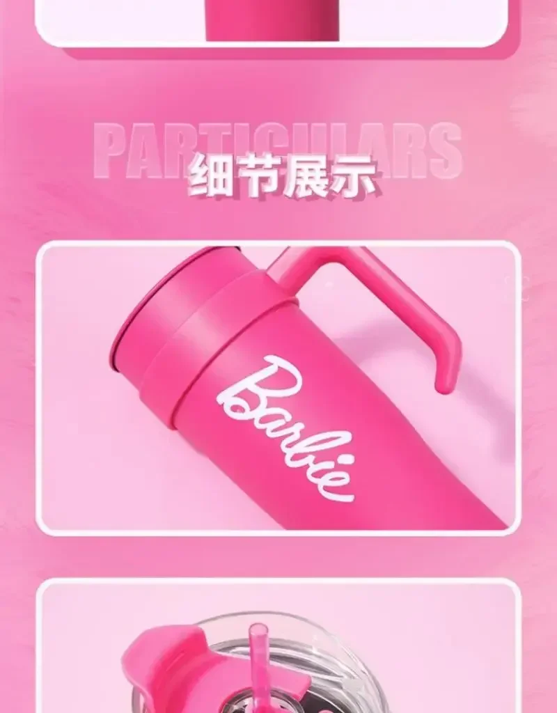 MINISO Barbie Co-Branded 1600ML Large-Capacity Stainless Steel Water Cup Thermal Insulation, Pink, Girls Water Bottle