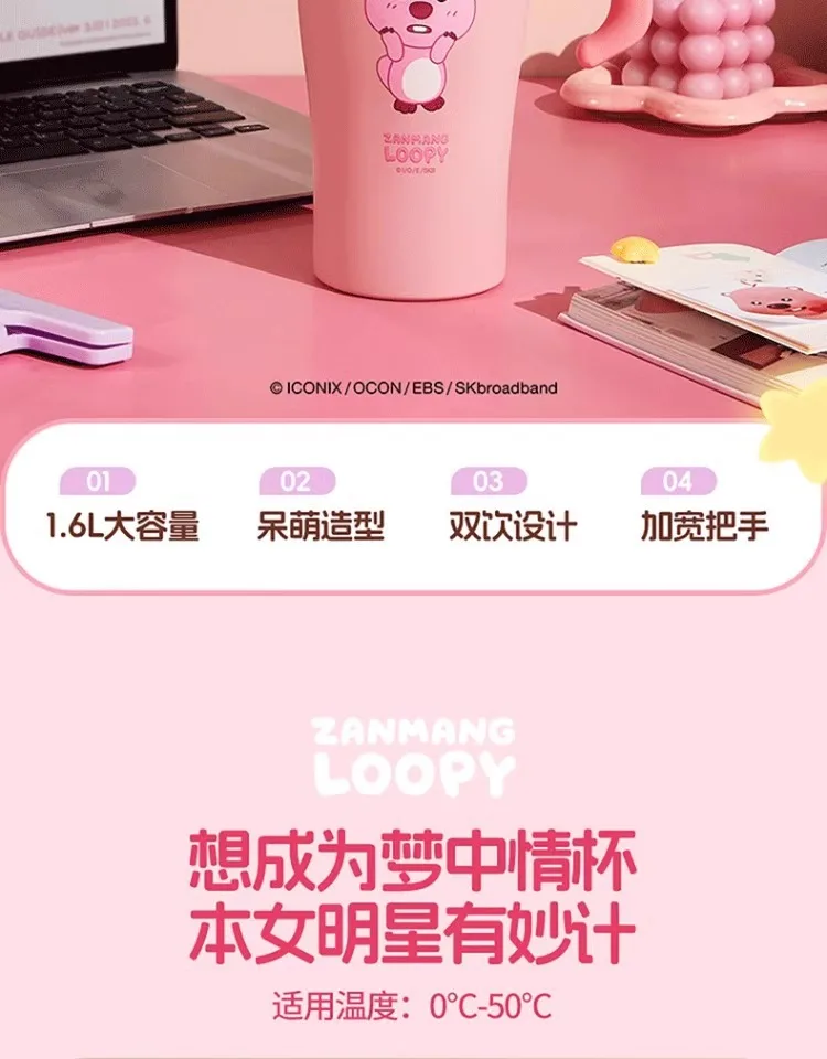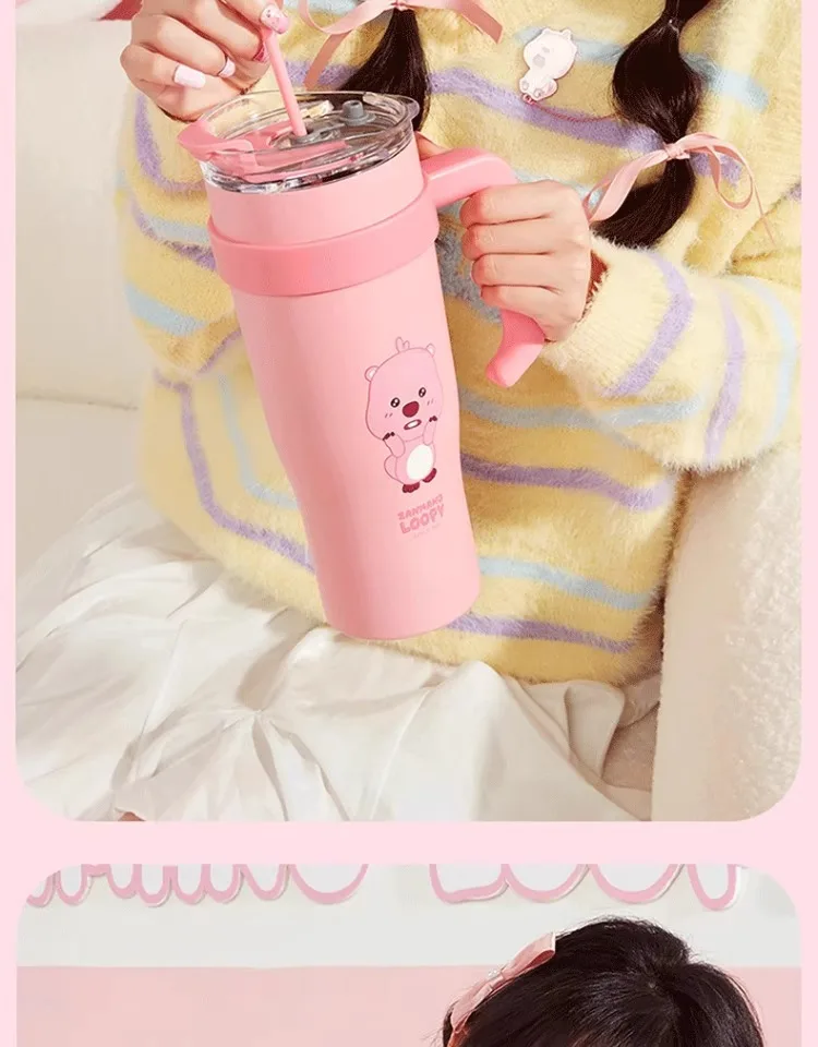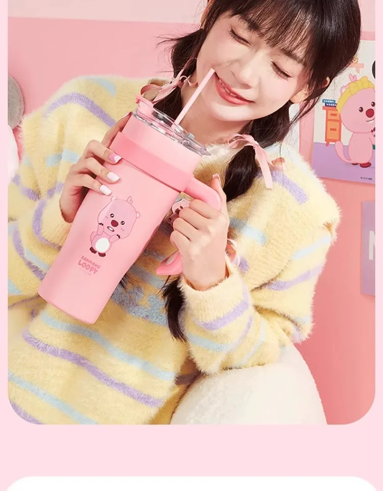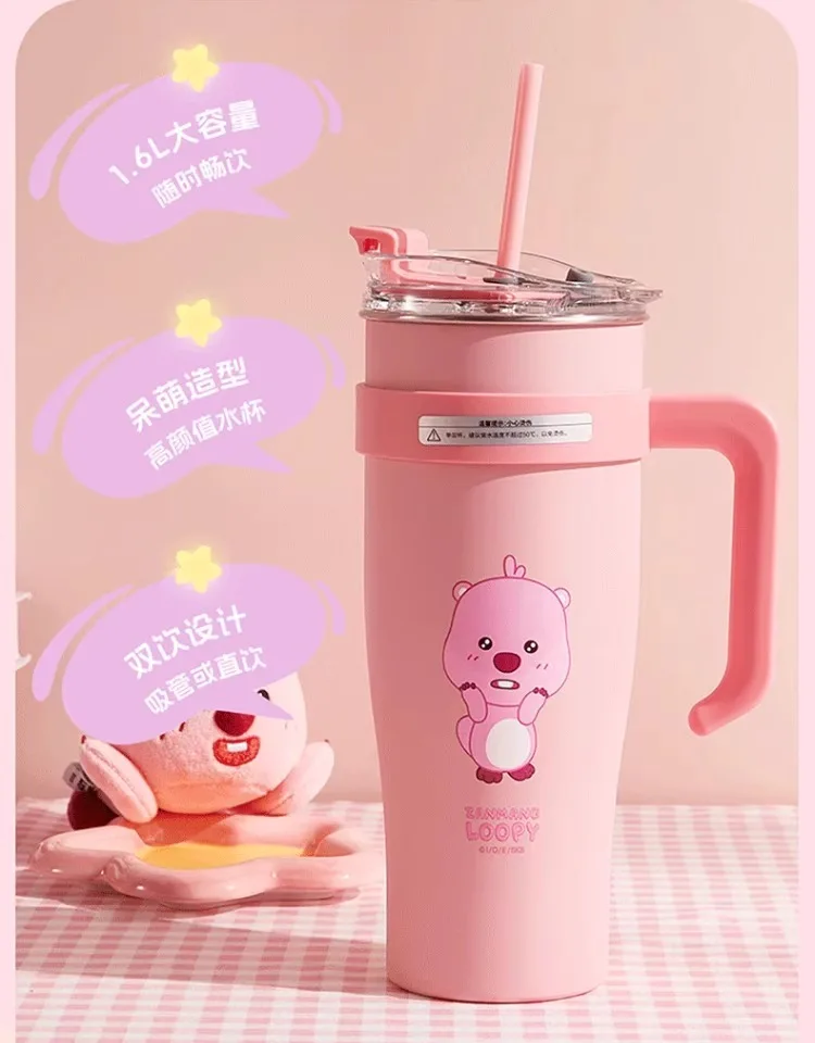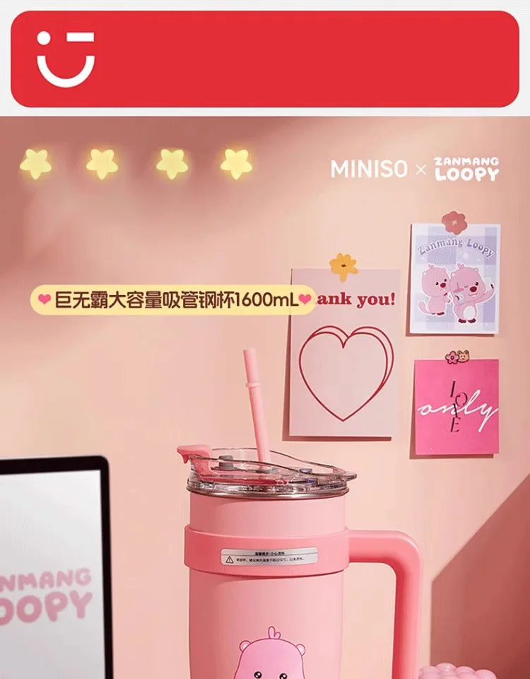 MINISO Loopy Series Jumbo Large Capacity Straw Cup Cute Cug for Girls, Stainless Steel High Color Value, 1.6L Capacity