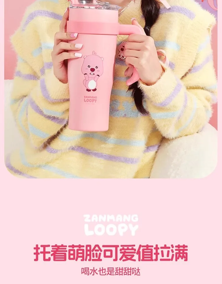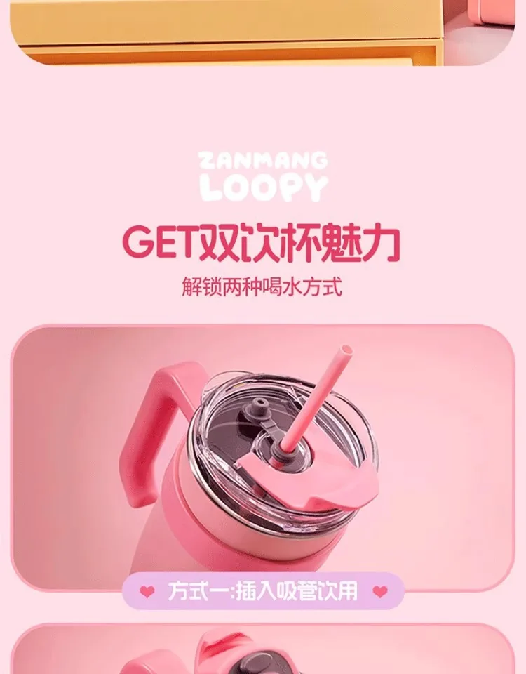 The MINISO Loopy Series Jumbo Straw Cup stands out with its vibrant, high-color-value design. The cup features a playful and cute graphic that appeals to girls of all ages. Made from durable stainless steel, it boasts a sleek and shiny finish that adds a touch of sophistication. The jumbo size ensures that it can hold a substantial amount of liquid, making it ideal for those who need a larger serving of their favorite drinks. The integrated straw adds to the convenience, allowing for easy sipping on the go.