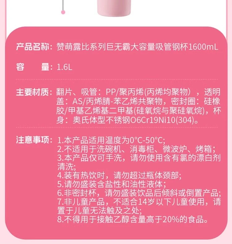 - 1.6L Capacity: Generous size to accommodate a large volume of your favorite beverages, perfect for long days out or sharing with friends.