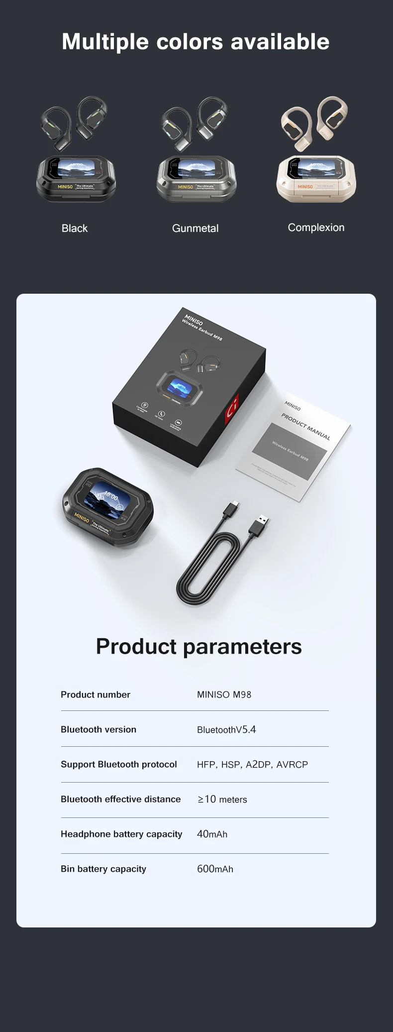 Perfect for sports enthusiasts, gamers, and anyone who enjoys high-quality audio on the go, the MINISO M98 Wireless Headphones