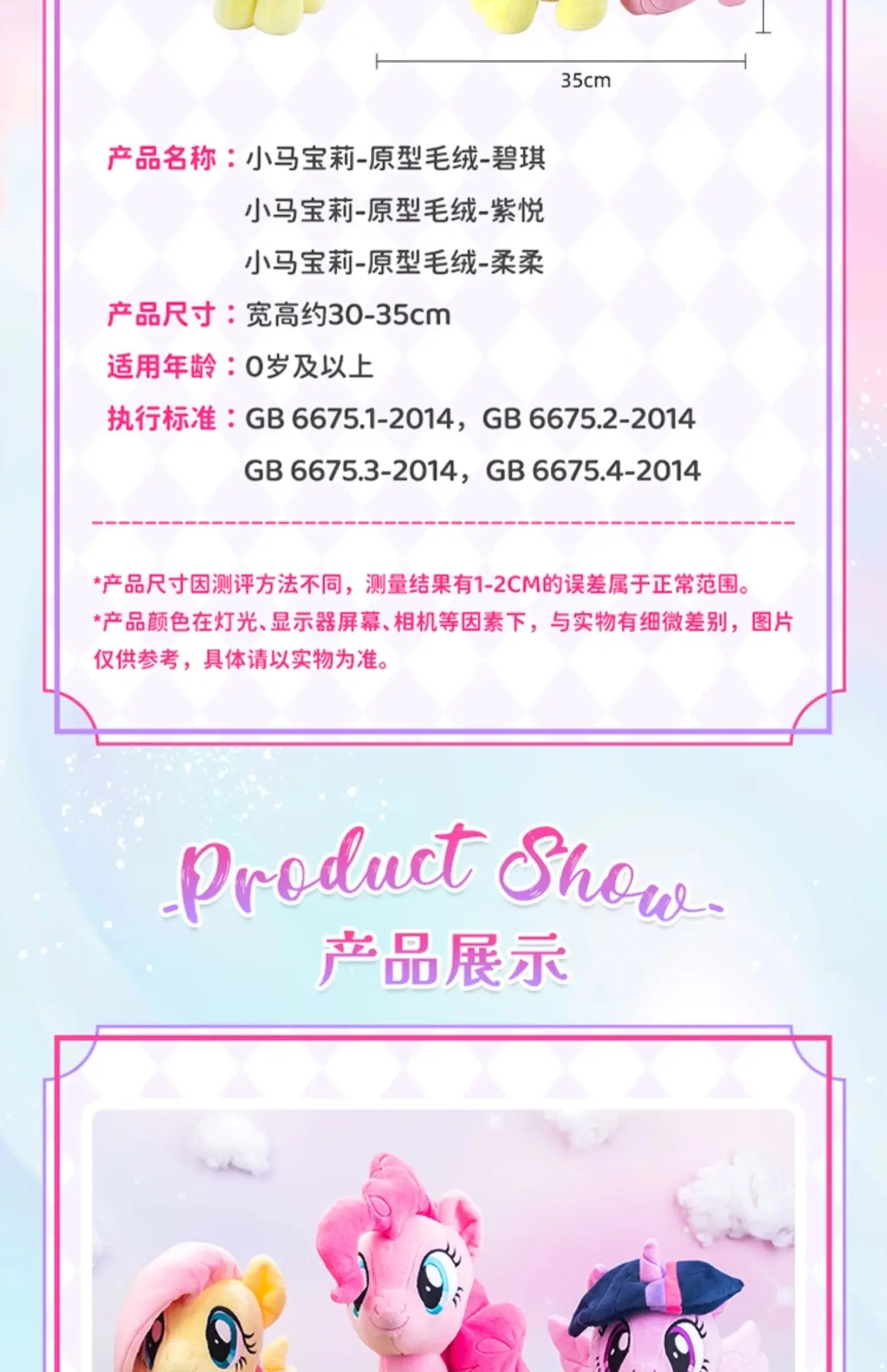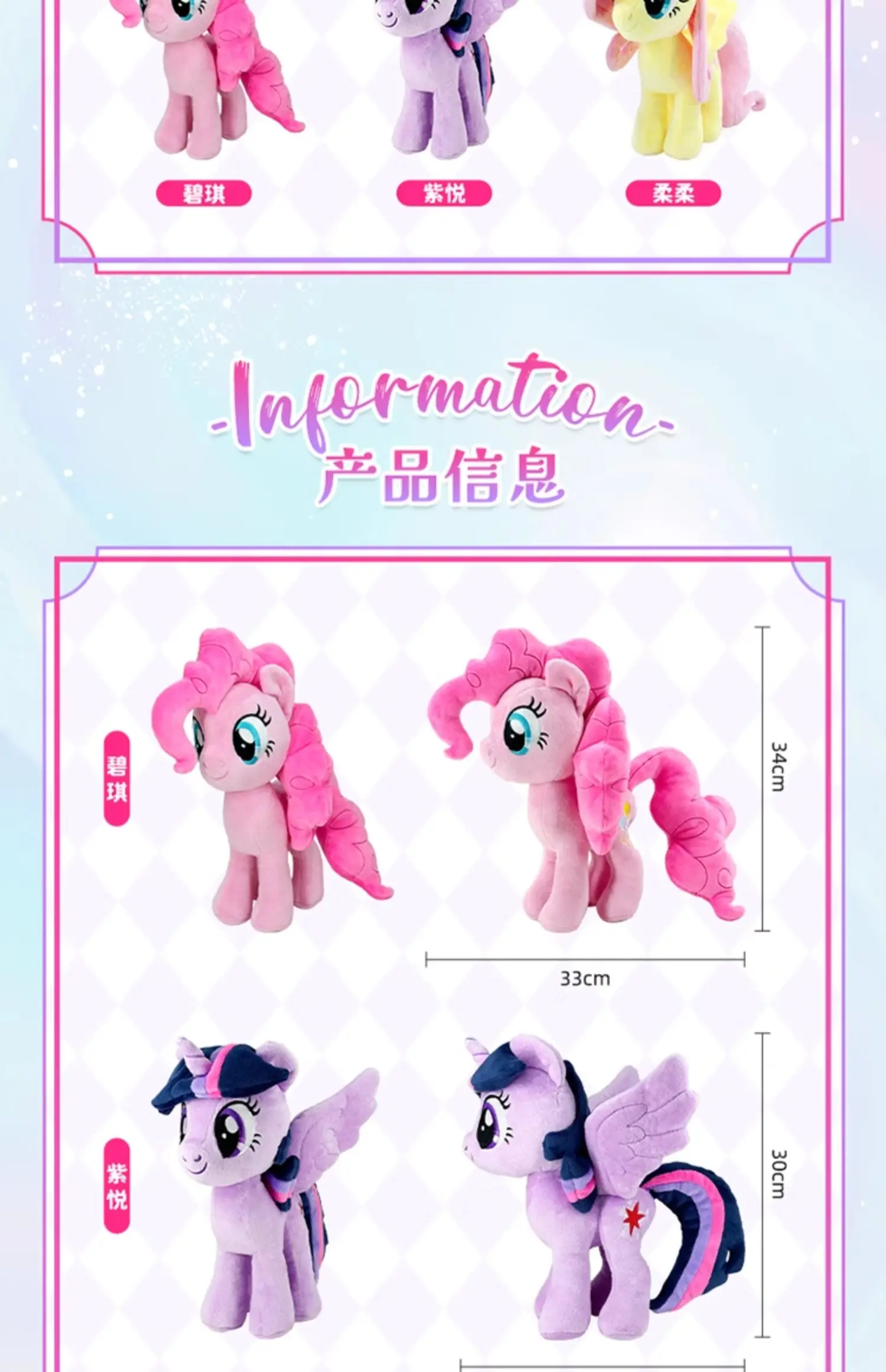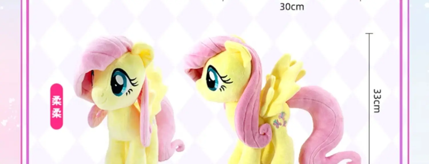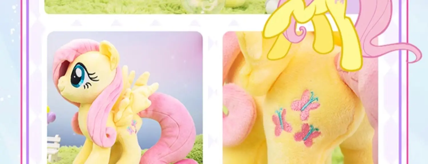 - Design: The plush dolls showcase the popular My Little Pony characters Pinkie Pie and Fluttershy, each crafted with detailed embroidery and vibrant colors. The dolls capture the unique personality and charm of each pony, making them instantly recognizable and beloved by fans.