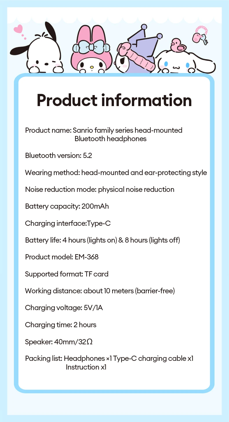 In summary, the Miniso Sanrio EM-368 Bluetooth 5.2 Headphones offer a delightful blend of high-performance audio and charming design. With