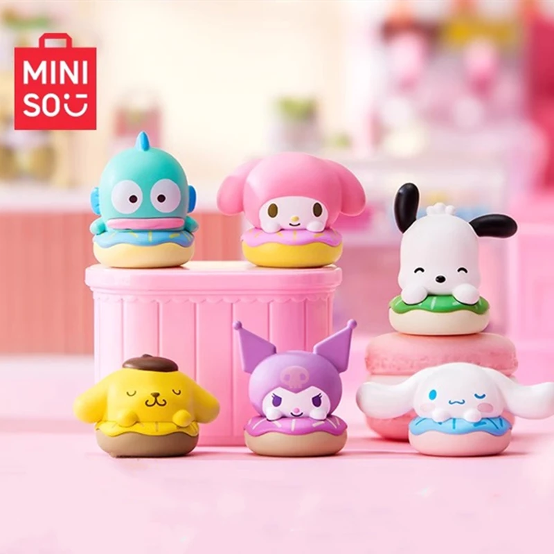 MINISO Sanrio Family Donut Series Candy Pellet Blind Box Kawaii Surprise Toy, Desktop Decoration Model, Ideal Christmas Gift for Children