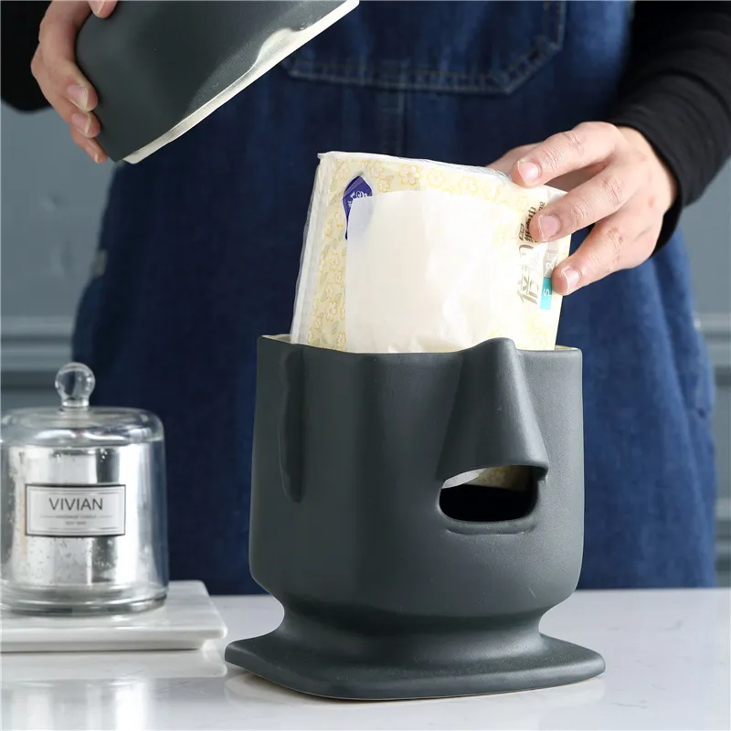 Add a touch of modern art to your space with our Moai Statue Ceramic Drawer Tissue Holder. Inspired by the iconic Moai statues of Easter Island, this tissue holder combines functionality with a bold, artistic design, making it a statement piece for any room. Crafted from high-quality ceramic, this tissue dispenser features a hidden drawer for easy refills, allowing you to store and dispense tissues with ease and style. Perfect for living rooms, bedrooms, offices, or bathrooms, this Moai statue tissue holder brings an artistic vibe and a touch of humor to your decor.