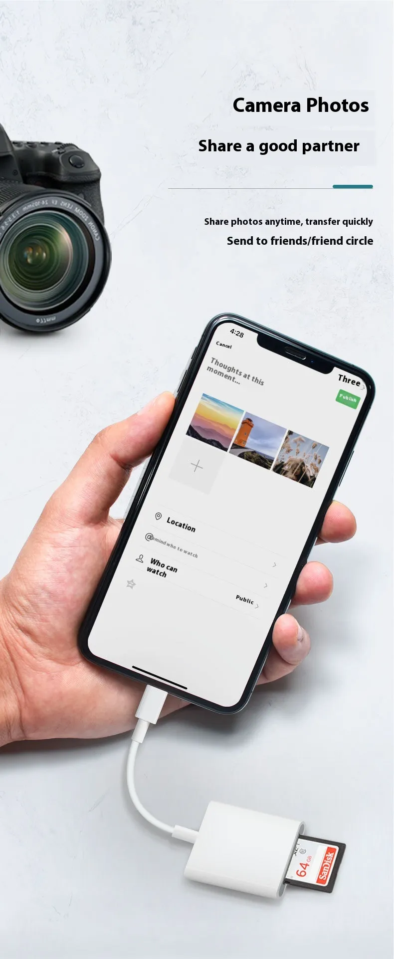 The Mobile Phone Applicable Camera Card Reader Adapter OTG Data Cable is the ultimate accessory for transferring and managing data between your mobile phone and external storage devices, such as camera memory cards. Perfect for photographers, content creators, or anyone who needs to move photos, videos, and other files between devices quickly, this versatile adapter ensures seamless connectivity and data transfer. Whether you're using it to download files directly from a camera or transfer data between devices, this adapter makes data sharing easier than ever.