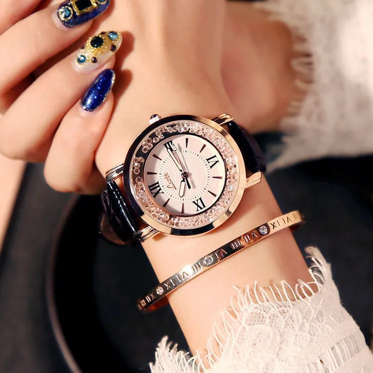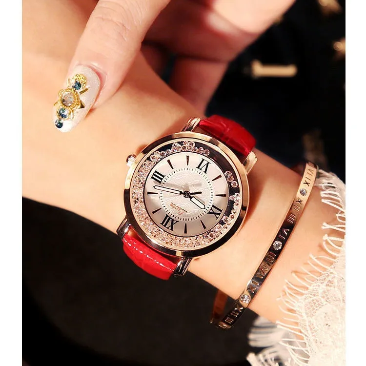 Elegant and Sparkling Design: The rhinestone accents around the dial provide a glamorous touch, making this watch perfect