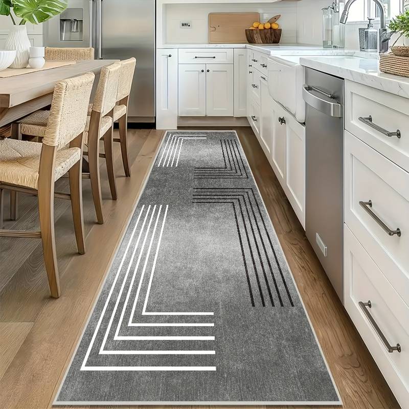 The Modern Geometric Rug with non-slip backing is a durable, easy-care rug designed to add comfort and style to any room. Whether in the hallway, kitchen, bathroom, or bedroom, this rug is perfect for everyday use and hassle-free cleaning.