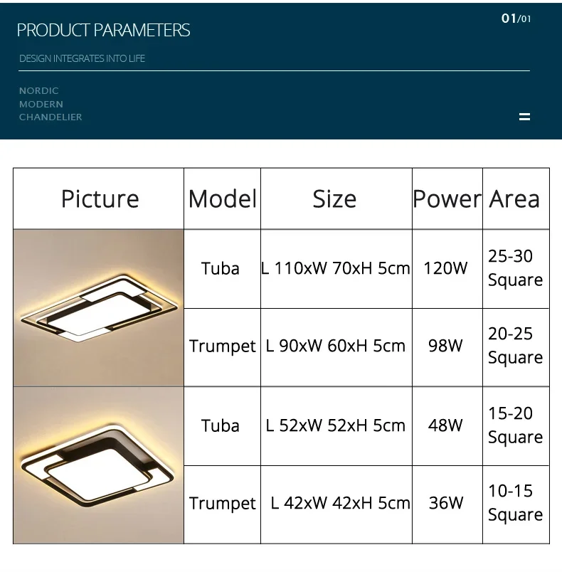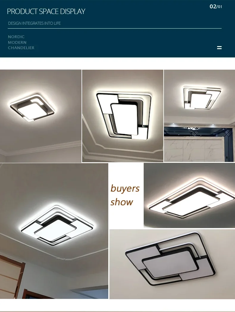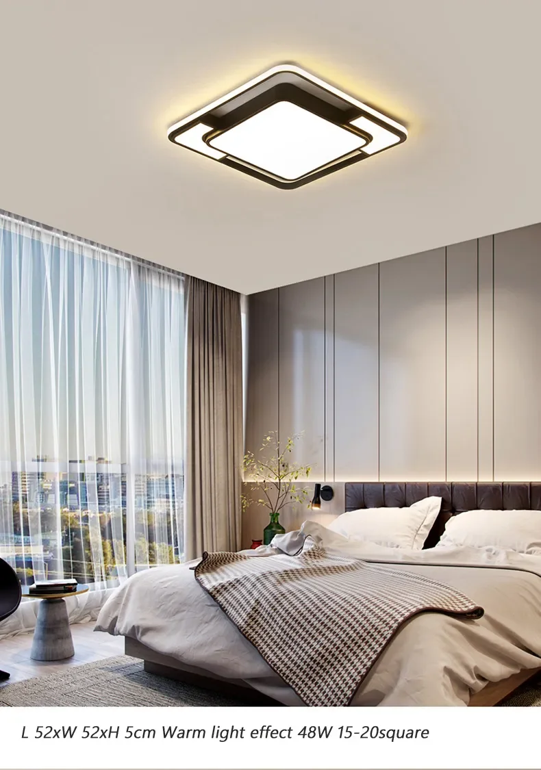 This modern LED ceiling lamp features a sleek Nordic square design, perfect for illuminating living rooms, dining rooms, bedrooms, and studies. It serves as an elegant chandelier light fixture, adding a contemporary touch to any room.